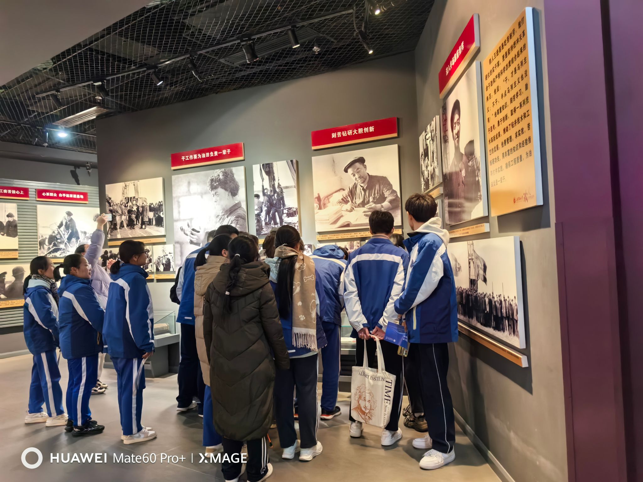 研學活動首站來到鐵人紀念館和校史館,在講解員們的引領下,五高師生代表分為兩組進行了參觀。在鐵人紀念館,通過講解員細致的講解,結合一幅幅珍貴的照片、一件件實物展品,五高師生深切感受到鐵人47年的不凡人生歷程,深刻領悟了鐵人精神的內涵。在校史館,跟隨講解員的步伐,五高師生認真聆聽了我校的建設發展歷程,透過一個個展板,一件件歷史實物,大家學習了先輩們篳路藍縷艱苦辦學的奮斗精神、專家學者潛心育人的優秀事跡和畢業生扎根祖國大地回饋社會的愛國情懷,深切感受到我校的校園文化和學習氛圍,也激發起內心對大學生活的向往和憧憬。