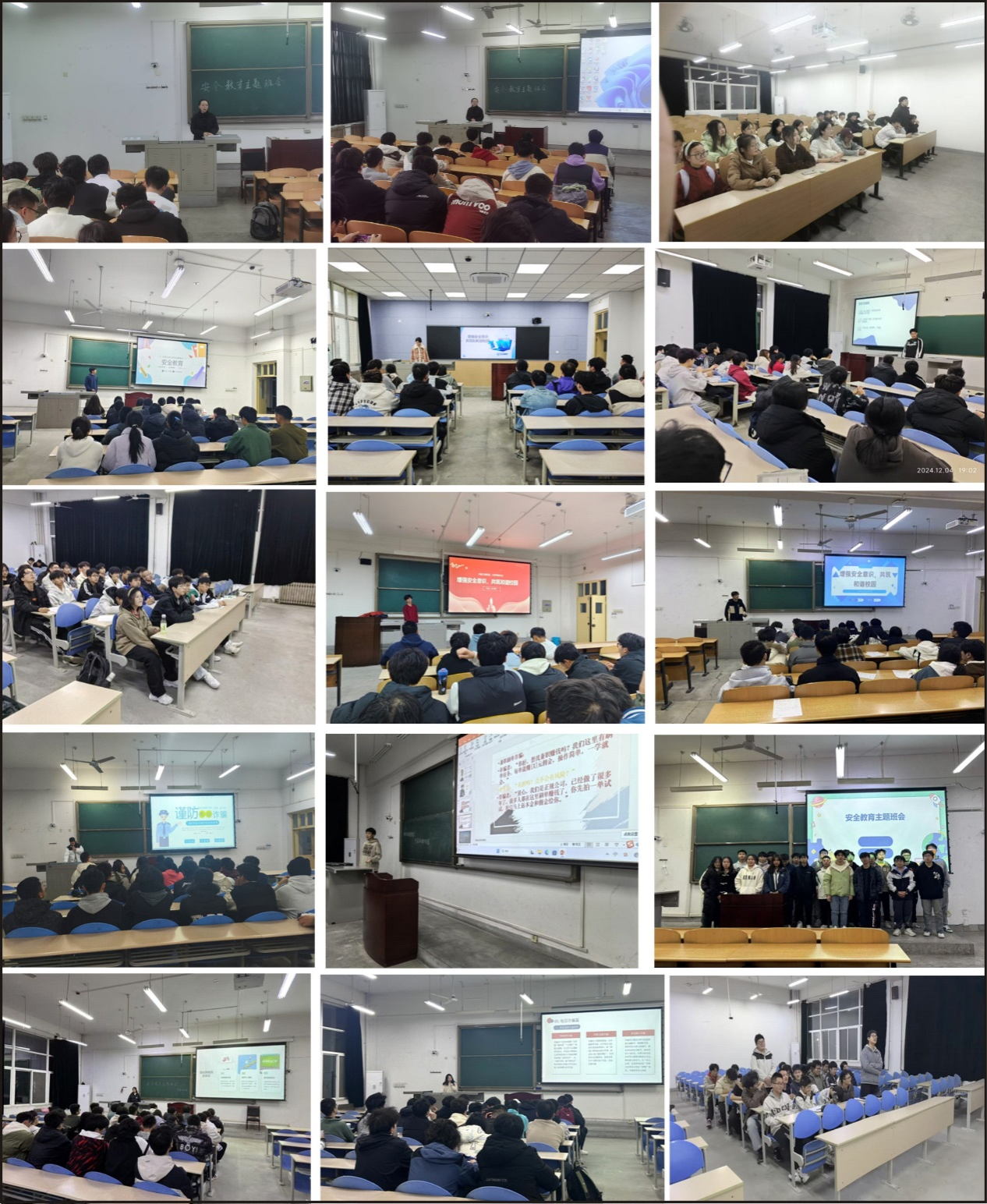 根據學?!蛾P于開展安全教育主題班會的通知》的要求,在著力強化校園安全保障體系、全方位提升學生安全素養的關鍵時期,我院各年級以班級為單位,于12月3日—12月8日全面開展“增強安全意識,共筑和諧校園”主題班會,覆蓋全體本科生,全力構建安全防護網。