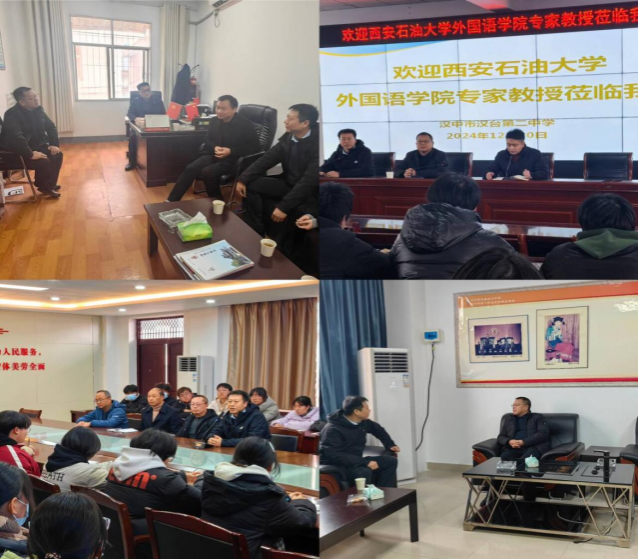 為全面做好2024年度我校的招生宣傳工作,持續推進優秀生源基地建設,12月10日,外國語學院副院長陳武、外國語學院教師張磊和教師張帆一行赴我校優秀生源基地漢中市漢臺中學、漢臺第二中學和鋪鎮中學贈送錄取喜報,開展進校講座和招生宣傳工作。三所學校黨委書記、校長、副校長和教育處主任參加了活動。