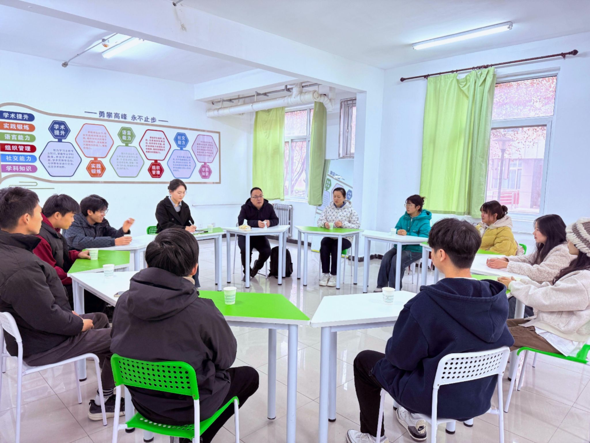 為拓展學生的專業知識,提升學生的學習興趣,12月10日下午,化學化工學院在學?!耙徽臼健睂W生社區——“綜合發展園地”舉辦第十五期“教授下午茶”活動。本期活動邀請學院應用化學系孟祖超老師做客,學院2022級學生代表參加。本次活動由學院2022級輔導員秦嶺主持。