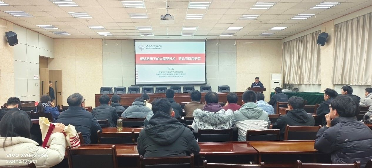 12月10日下午,電子工程學院邀請西安電子科技大學劉旭博士在雁塔校區第三會議室作了題為《諾獎啟示下的人工智能大模型技術-理論與應用研究》的學術報告。報告會由學院副院長任志平主持,共70多名師生現場聆聽了報告。