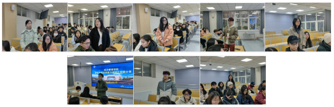 分享結束后,同學們積極提問,分享同學依次進行解答。商管2301班團支書提問:作為班委,有什么好辦法能有效地激勵整個班級團體?魏翔宇回答到:激勵整個班級團體,關鍵在于增強團隊凝聚力與激發個體積極性??梢酝ㄟ^設定共同目標,及時開展團隊建設活動等增進同學們間的聯系,促進形成積極向上的班級合力。商管2301班班長提問:組織班級活動中,遇到意見不合的情況應怎樣處理?李冠宇回答到:應首先判斷個人觀點是否正確,其次應和和其他班委、班內同學心平氣和地溝通,避免矛盾升級。此外,要給其他同學表達自己觀點的機會,認真傾聽各方意見,互相尊重,求同存異,以班級整體利益為重。商管2307班輔導員助理高恩堯提問:學生工作、班級工作及其他工作沖突時,應如何解決?徐顧銘回答到:當多件事情沖突時,應先從更緊急、更重要的事情做起,做好統籌規劃和溝通協調。同時,應注重人際關系的維持,在必要時可以尋求幫助。