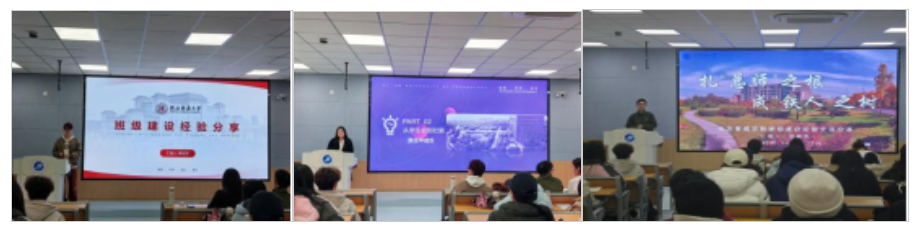 活動伊始,李夏凝介紹本次活動的目的及意義,并對三位分享同學進行簡要介紹。隨后,三位同學依次進行展示。李冠宇從從學風建設、科研競賽、班級建設、學生工作和個人思考方面進行講述,強調同學們要意識到班級干部要在老師處代表同學,在同學處代表老師,應注意個人言行,起到上傳下達的作用,錨定責任,切實為同學們做工作。魏翔宇從責任中成長、不斷提升自身能力和平衡學業與工作三個方面展開分享。第一,提醒同學們應做好時間與精力管理,包括定期反思工作、進行時間塊劃分、依據實際情況及時彈性調整工作計劃等;第二,成為團隊的“潤滑劑”,學會傾聽與溝通的藝術;第三,通過明確戰略規劃與優先級管理、強化團隊協作效能與領導力發展和優化時間資源配置與心理調適策略三點做好工作與學習的平衡。徐顧銘從學業為本,實干為綱;以心求精,用愛凝聚;支部建設、致誠致公;立足班級,奉獻社會四個方面提出一些具體實施方案,如通過搭建線上社區平臺,讓同學們可以自由發聲,促進班級建設進一步完善;形成良好學習氛圍,以比學趕幫超的態勢加強班級同學專業知識的提升、科研競賽成果的累積等。