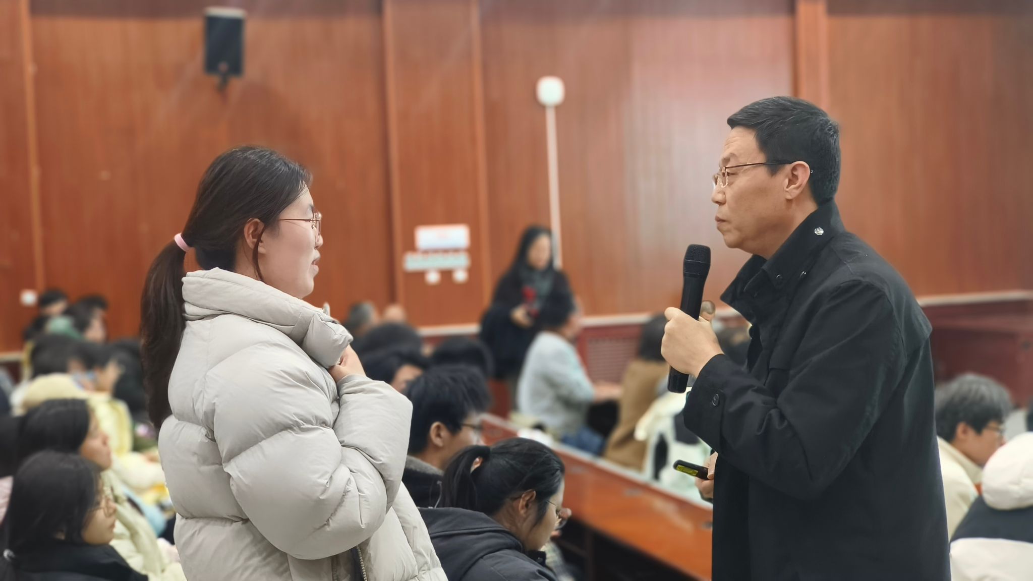 四位老師從多個角度介紹了各專業的獨特魅力和廣闊前景,結合當前專業就業崗位信息和碩士、博士階段學習內容,鼓勵2023級計算機類的同學們能夠根據自身興趣特點,找到最適合自己的發展道路。四位老師并就現場同學提出的圍繞專業課程學習、就業前景等問題進行了詳細解答,幫助學生全面了解各專業的培養方案、人才培養目標、職業發展方向和優秀畢業生風采。