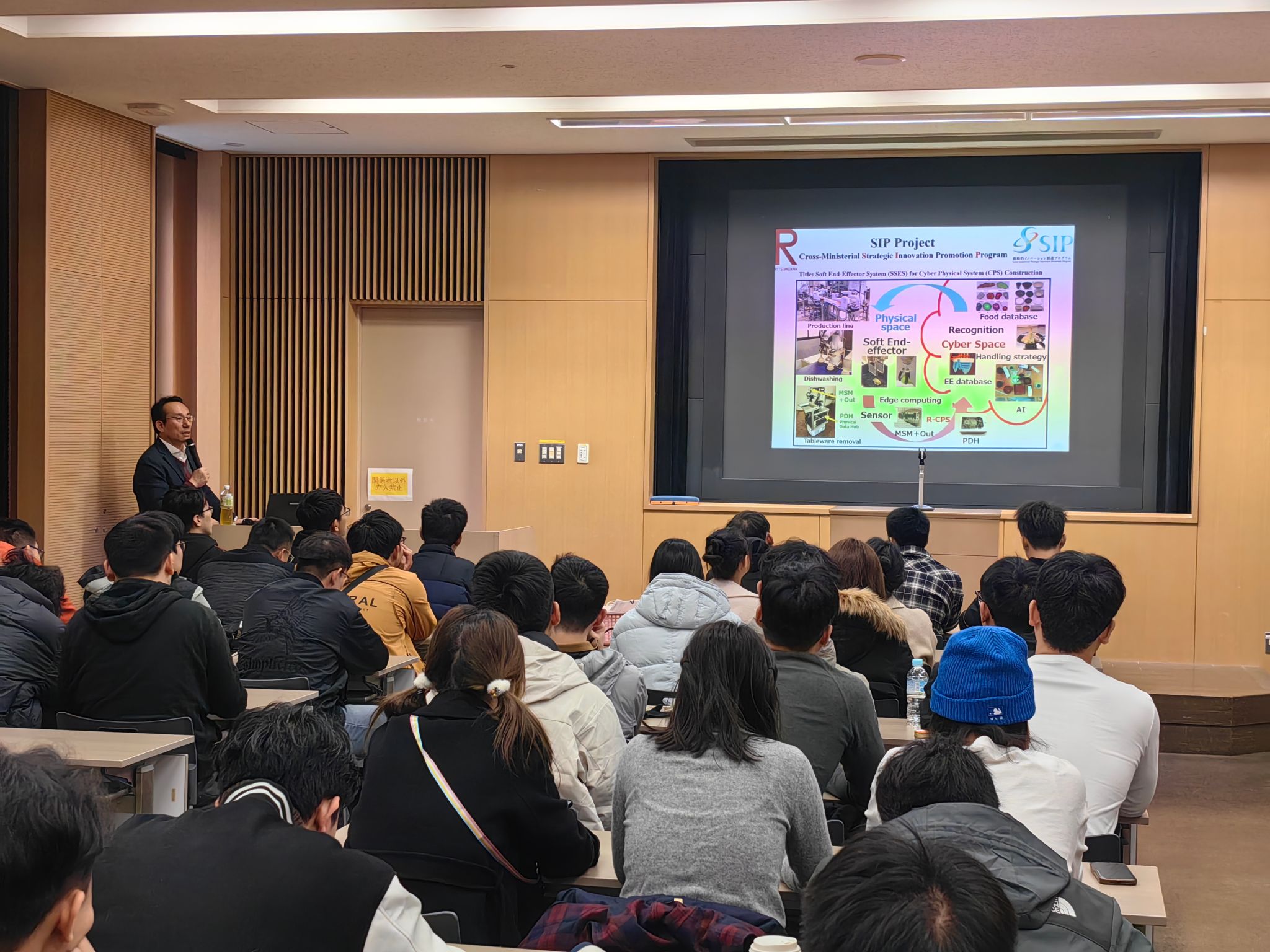 京都大學聯盟,由日本京都及周邊地區的46所院校組成,其中包括私立大學、??茖W校以及國立和公立大學,該聯盟是日本大學合作組織的先行者,其規模為日本之最。在京都大學聯盟基地,同學們參加了王忠奎教授題為“軟體機器人技術應用”的專題講座。王忠奎教授介紹了軟體機器人在日本的發展趨勢,以及軟體機器人末端執行器在日本食品行業中的應用,講述軟體機器人的應用前景及未來的發展方向。在京都大學聯盟,同學們與京都大學Cribug博士和陳晨博士作了深入交流。兩位博士就日本留學、中日文化交流、中日大學生就業等話題,與同學們開展了深入的溝通交流,同學們踴躍提問,兩位博士知無不言,現場氣氛熱烈。