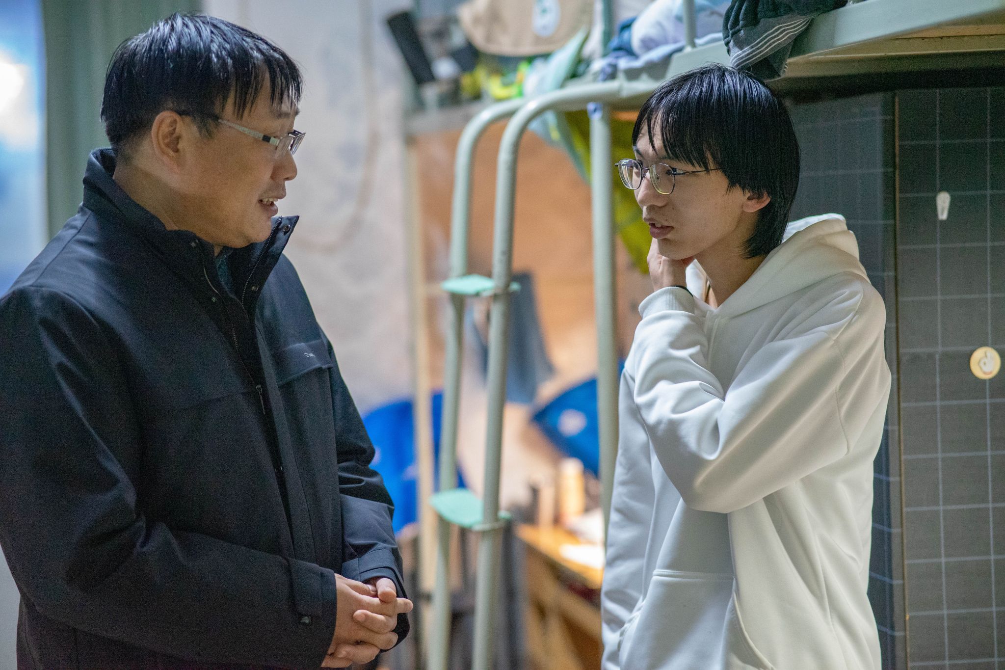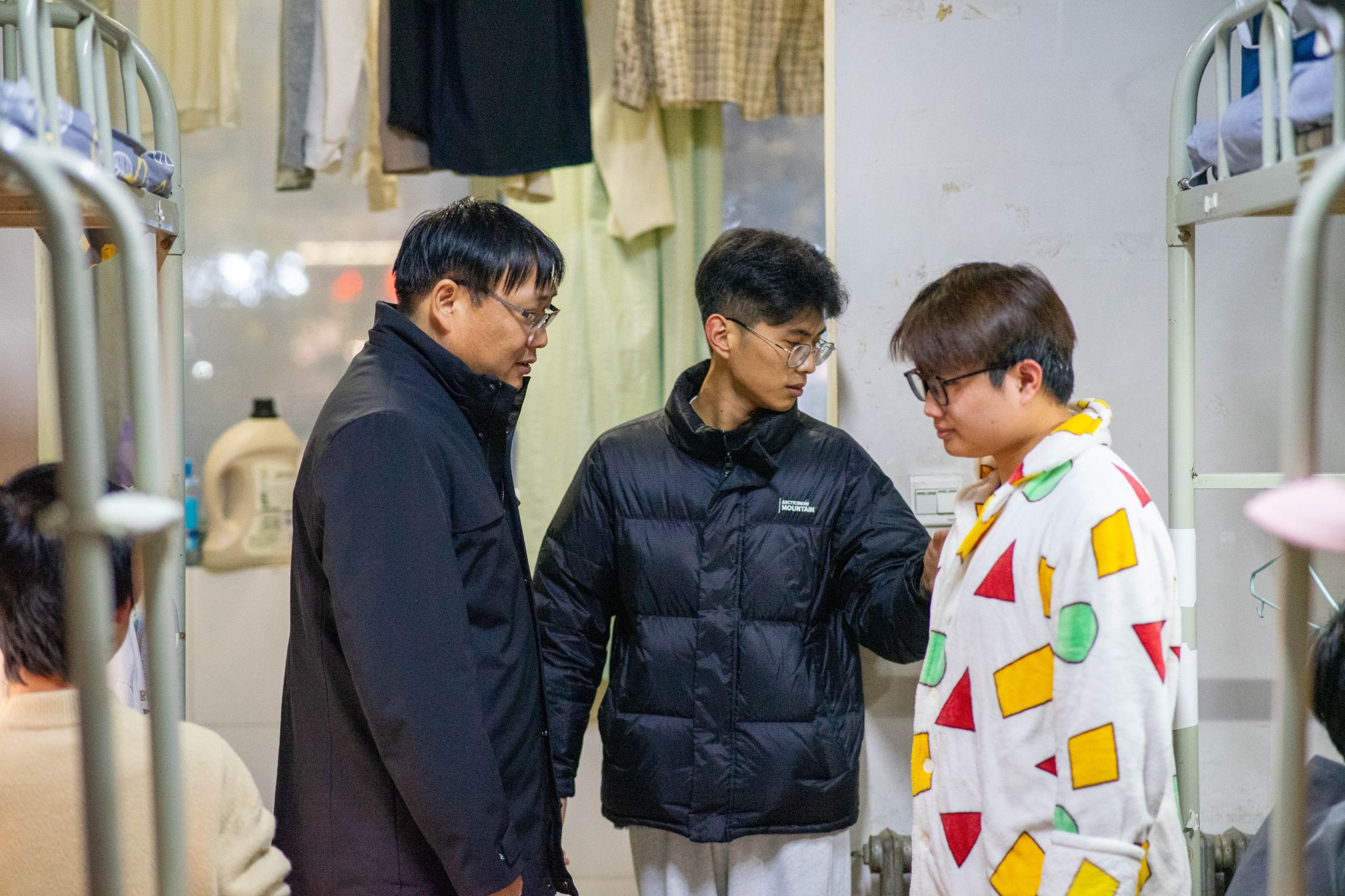 11月25日,理學院副書記楊富民、2022級以及2023級輔導員李猛共同走訪了學院學生宿舍,與學生面對面交流,了解他們的生活和學習情況,并重點檢查了宿舍的安全隱患。楊富民強調了宿舍安全的重要性,提醒學生們要時刻保持警惕,注意用電安全、防火防盜等。同時,他還鼓勵學生們要相互關心、相互幫助,共同維護宿舍的安全和穩定。