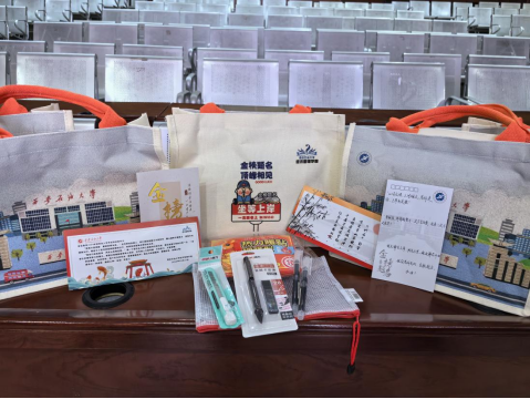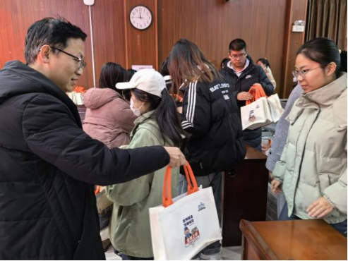 活動現場,學院為同學們送上了精心準備的考研大禮包。每一份禮物都承載著深深的祝福和期待。禮包中包含了考試專用文具、驅除寒冷的暖寶寶、學院設計的手提袋等物品。這些禮物不僅體現了學院對同學們的深切關愛和美好祝愿,更激發了同學們備考的信心和動力。同學們紛紛表示深受感動與鼓舞,表示一定會牢記囑托,以最好的狀態全力備考。