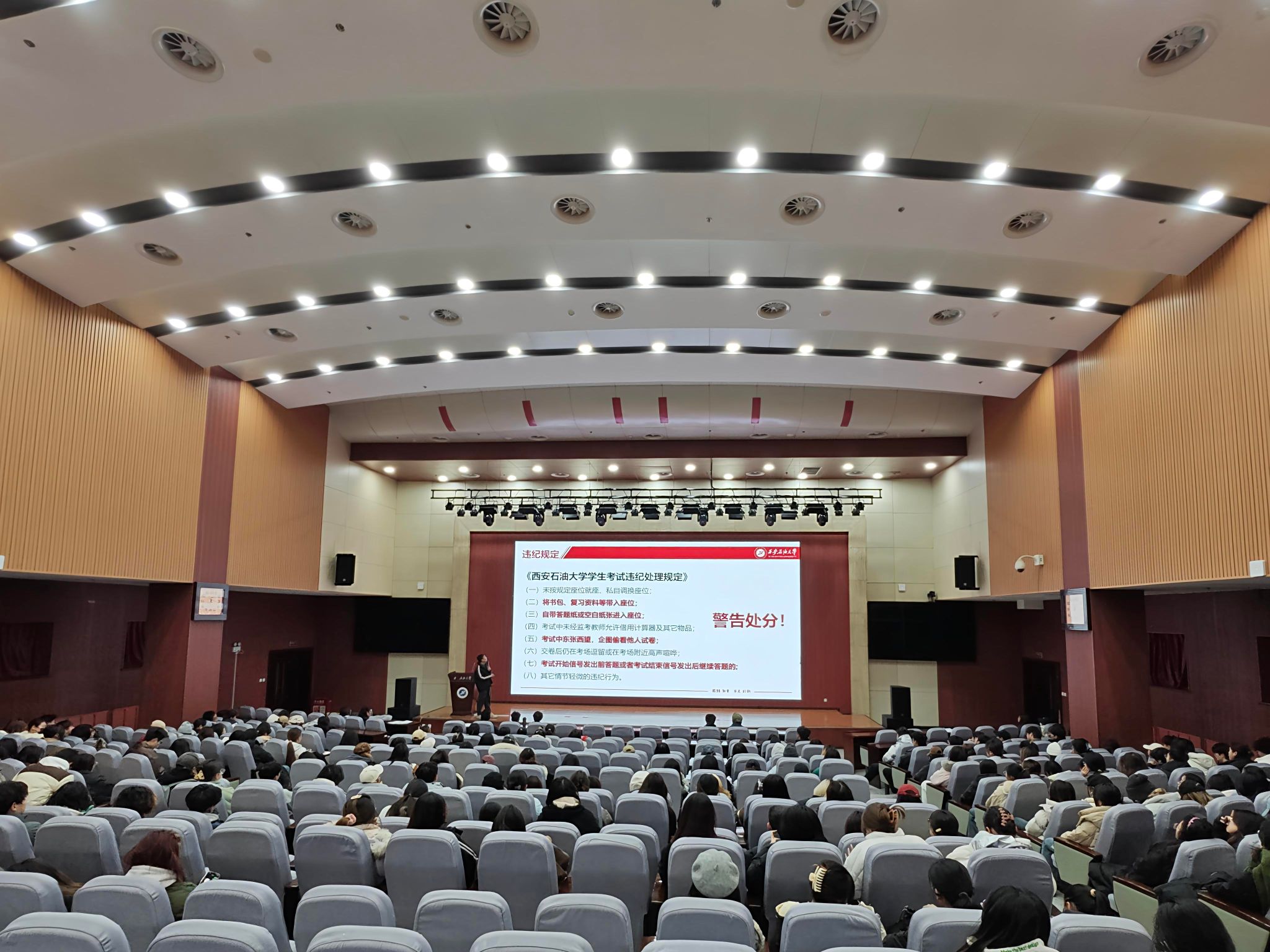為進一步強化學生的誠信意識,嚴肅考風考紀,同時做好學生節前假前教育,12月30日上午,人文學院在鄠邑校區弘石學術報告廳召開2023級考試誠信教育暨節前假前年級大會,2023級輔導員王凱杰主持,2023級全體本科生參會。