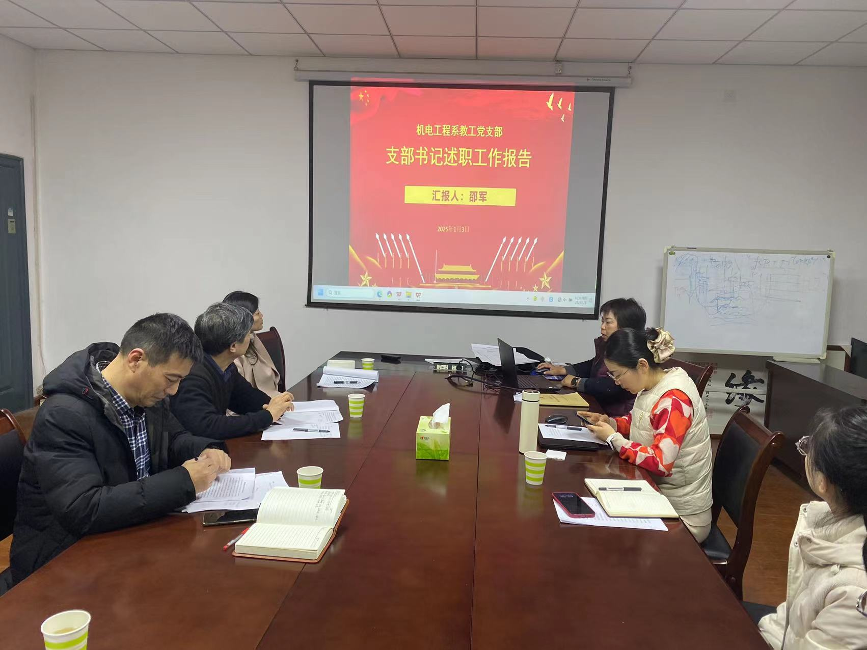 會上,智能機械系教工黨支部書記鄭杰、機電工程系教工黨支部書記邵軍、力學和實驗中心教工黨支部書記吳恒、機電學生黨支部書記馬舒宇結合黨支部實際,圍繞抓黨建履職情況、存在的突出問題和解決措施、下一步工作計劃等方面進行了述職。重點從深入貫徹落實黨的二十大和二十屆三中全會精神,落實基層黨組織建設計劃的工作任務,黨建促業務引領學院各項事業高質量發展等方面的突出成績、特色亮點、經驗做法進行了匯報。