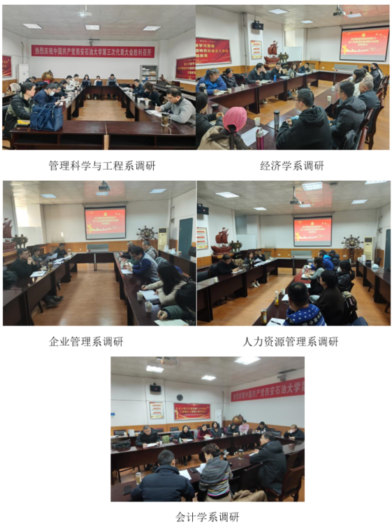 1月3日,經濟管理學院領導班子成員王君萍院長、董春詩副院長、李春霄副院長赴管理科學與工程系、會計學系、企業管理系、經濟學系、人力資源管理系調研,深入了解、梳理、總結各系教育教學成果培育情況。