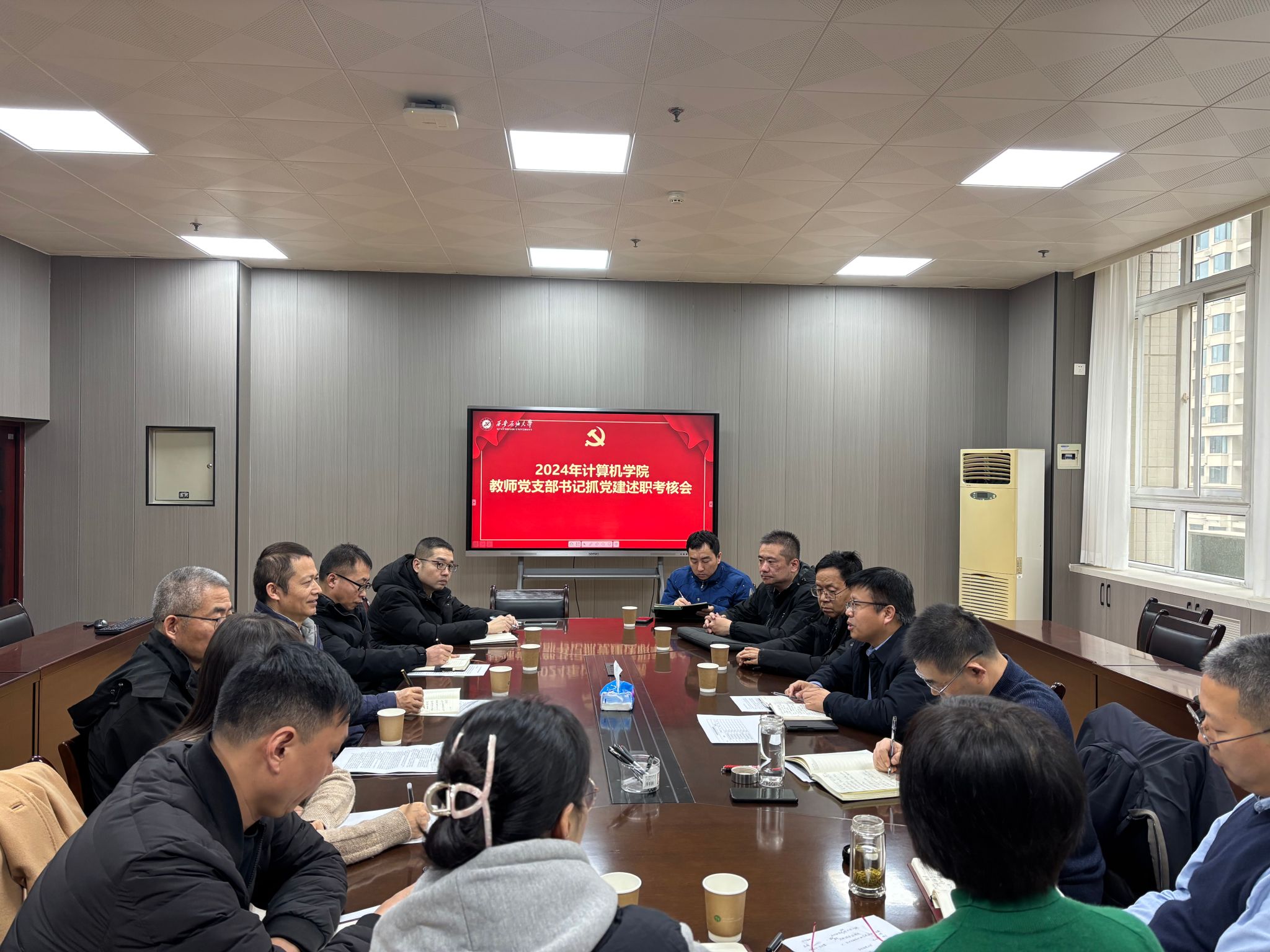 張驍勇在認真聽取每一位書記的述職后,對學院教師黨支部書記抓黨建工作進行了工作指導。他充分肯定了8位教師黨支部書記在2024年抓黨建工作中取得的成績,并結合計算機學院的學科專業特點、教學科研需求、人才培養要求等實際,對基層黨支部書記抓黨建工作進行了具體指導。一是要緊跟智能時代要求和學校發展步伐,更新黨支部政治理論學習的內容。要及時跟進新理論、新方法迭代,積極開展大數據、人工智能等學科前沿的學習,積極探索智慧教育實踐。二是要把握好對黨支部開展“三會一課”的基礎性要求,創新性地開展工作,扎實推進“分類指導、爭先進位”三年行動計劃。基層教師黨支部的黨建工作要為提升教師的素養和能力、提高人才培養質量保駕護航。三是要結合學院實際,加強黨員隊伍建設。要加強教師黨員的教育管理監督,更要凝聚師生力量,注重在青年教師群眾中發展黨員。他希望各教師黨支部書記認真總結經驗,不斷提升黨建工作水平,為實現學校黨委提出的“三大目標”,營造學校的“三個氛圍”,推動學校學院高質量發展貢獻基層組織的力量。