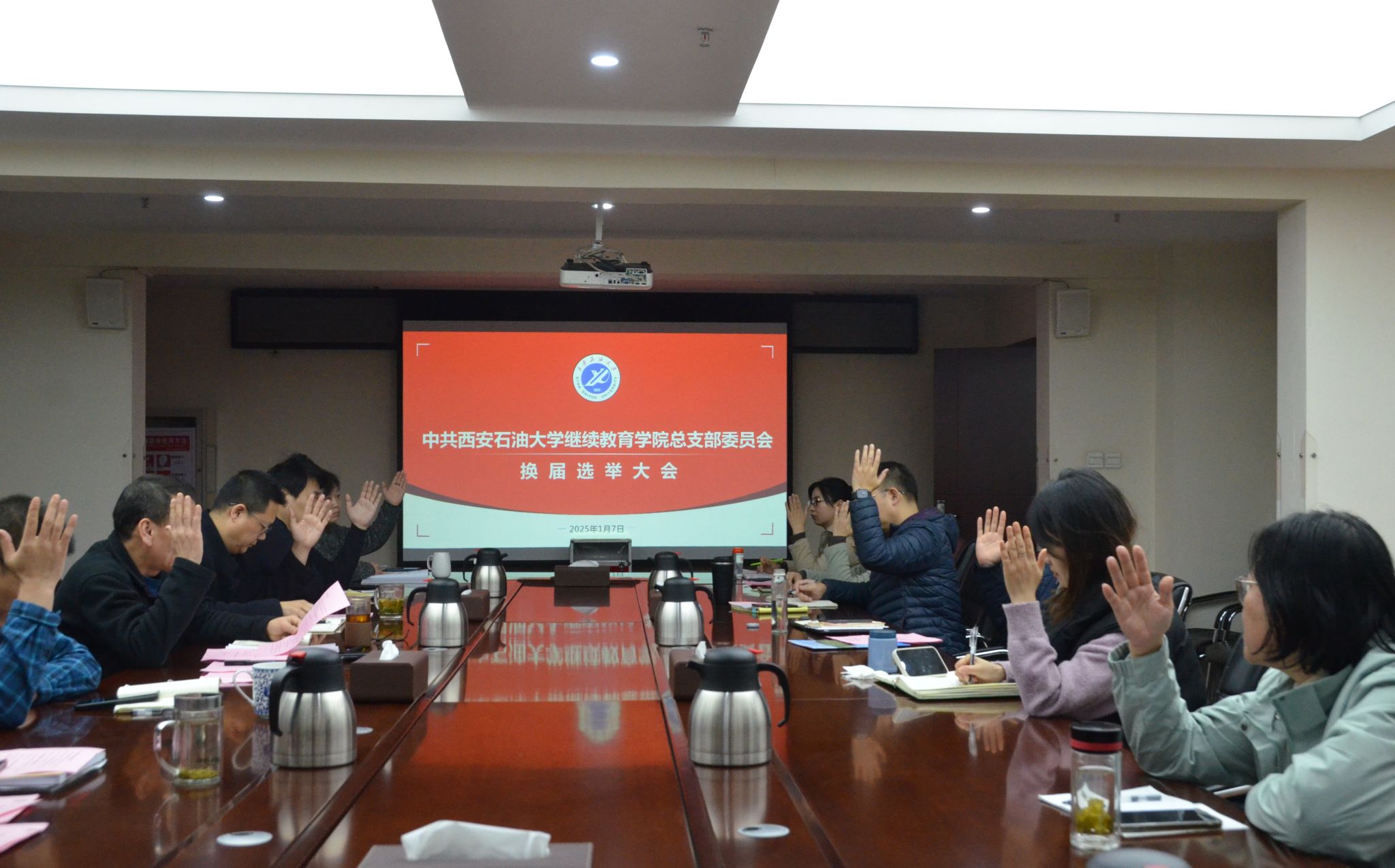 1月7日下午,繼續教育學院黨總支換屆選舉黨員大會在學院第一會議室舉行。學院全體教職工黨員參加會議,會議由黨總支書記張凌寒主持。