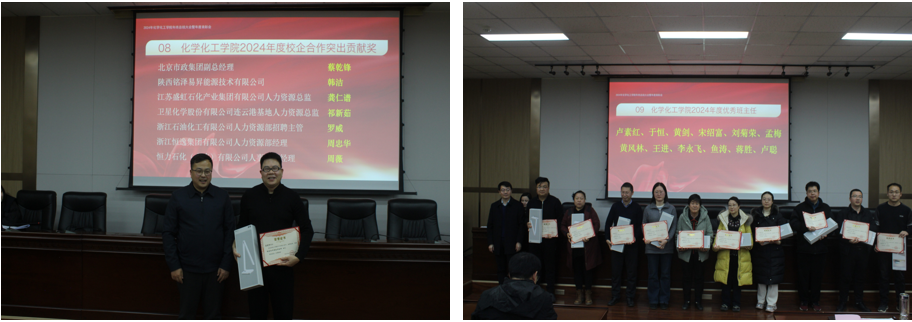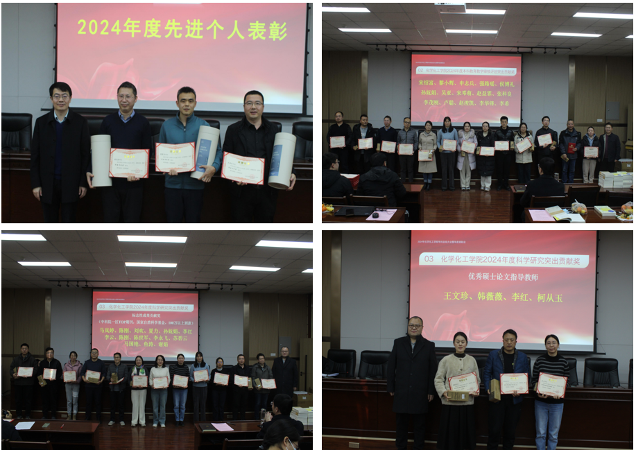 學院黨委書記高小明從堅持守正創新不斷提升工作亮點增量水平,強化責任擔當持續推動重點工作落地落實,存在問題及2025年工作思路等三個方面對學院年度工作進行了全面總結。他指出,2024年學院在校黨委的堅強領導下、在全體師生員工的共同努力下,各項工作取得了明顯進步。一是學科專業建設持續推進;化學工程與技術軟科排名從去年未上榜到今年躍升到前50%;實施學院提升ESI排名專項獎勵辦法,化學學科ESI排名進入全球前1%。二是人才培養質量持續提高;連續3年斬獲化工設計大賽全國一等獎。本科生去向落實率位居全校第一。深入榆林16個中學進行本科招生宣傳,學院負責區域招生數從去年198名增加到今年255名學生,增加了近30%。依托卓越工程師學院,與中石化大連院、中國環境科學院等聯合培養研究生30余名。三是師資隊伍結構持續優化;1人榮獲“全國模范教師”稱號,獲批二、三級教授2人、8人晉升教授、副教授職稱。主動前往天津大學、中科院過程所等單位進行博士招聘宣講6場次,引進博士9人。四是科研創新能力持續增強;張智平教授團隊首次在化學領域三大頂刊之一《德國應用化學》發表學術論文1篇。科研經費到款2916.79萬元,較去年同期增長51%。現代分析檢測中心順利通過CNAS擴項認證和CMA現場認證。五是開放辦學水平持續提升;帶隊走訪中國石油大學(北京)、中科院山西煤化所、長慶石化等近20家單位開展校際、校企合作。緊盯國家7大化工園區擴大就業朋友圈,帶隊走訪盛宏石化、恒力集團等世界500強企業開展訪企拓崗專項行動。他強調,2024年度學院黨委在推進工作中取得了一些成績,但對標對表上級要求、學院實際和師生期盼,還存在一定差距。針對2025年工作,他強調,學院班子成員和全體教職工要按照學院“12331”工作計劃,以學科建設(博士點申報)和隊伍建設為核心,聚焦重點任務,全面改革創新,持續推動學院事業發展再上新臺階!