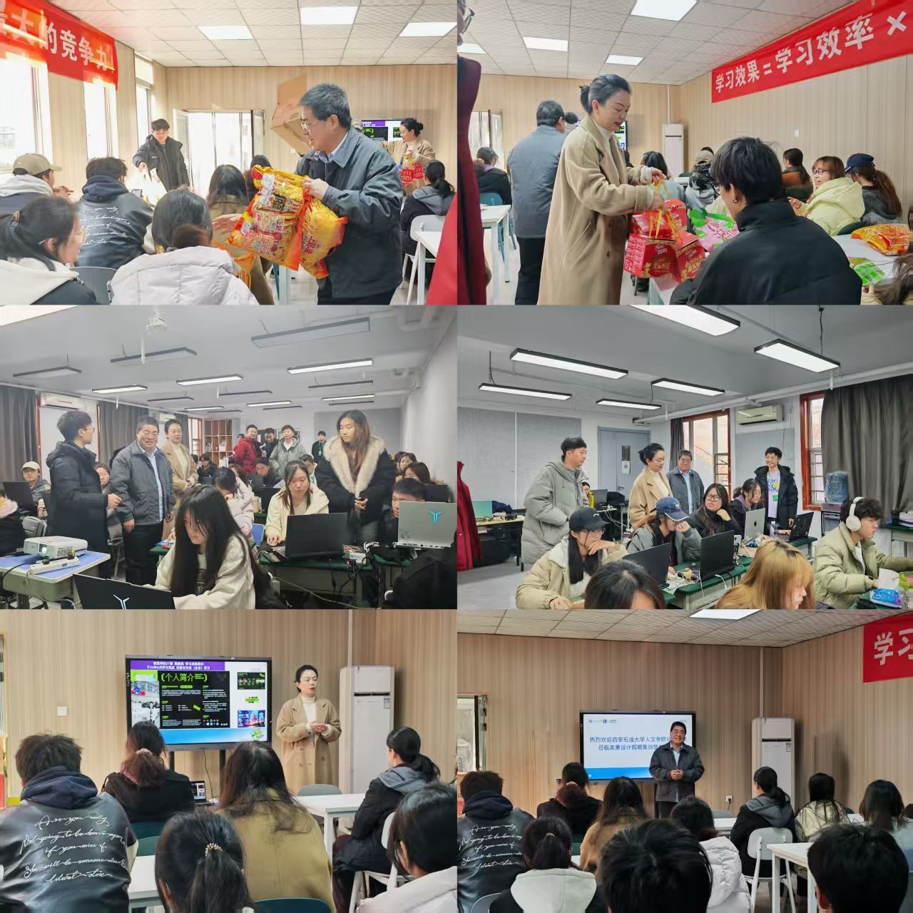 在公司負責人的陪同下,余小勇書記一行參觀了美果設計的工作環境以及教學區域,了解參訓學員近期學習生活情況,并慰問人文學院參加本期集訓營的學生,為學生送去糖果、餅干等慰問品,向學生介紹了集訓營優秀學員的大廠實習經歷,鼓勵學生珍惜學習機會,向優秀學員看齊。