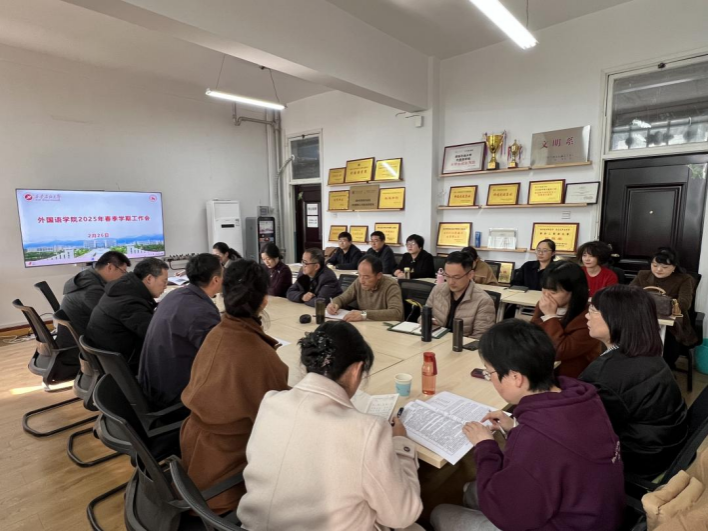 2月26日下午,外國語學院在雁塔校區華油能源樓727會議室召開2025年春季新學期工作會議。會議旨在全面規劃新學期的重點工作,為學院的持續發展注入新動力、激發新活力。院黨委書記張建高、副院長陳武、副書記邱嶺以及各專業負責人、各系部主任、副主任,教工黨支部書記、副書記及學院科級干部參加會議。會議由副院長陳武主持。