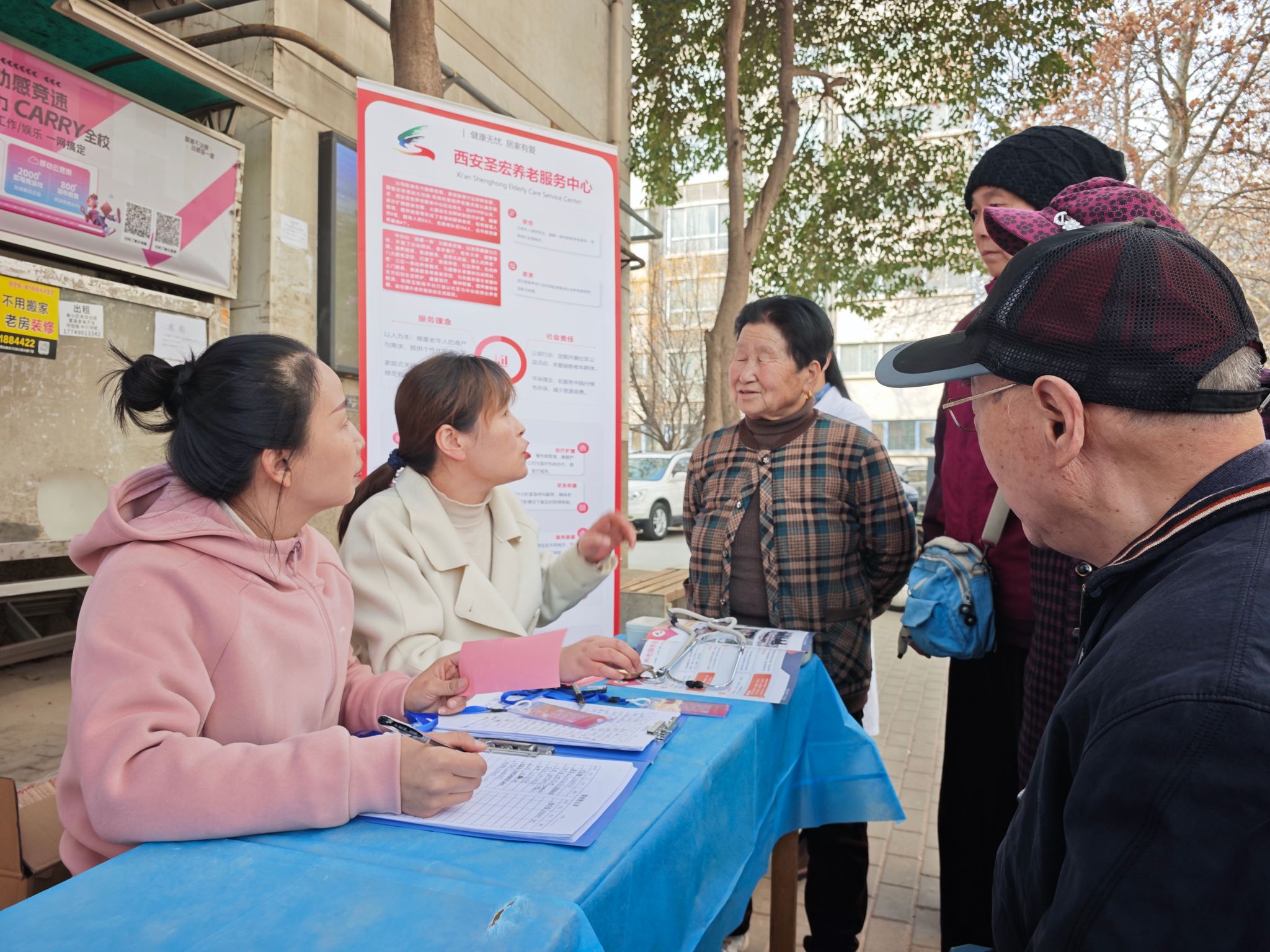 西安圣宏養老服務中心工作人員為前來咨詢的師生、社區居民詳細介紹了醫康養結合的相關內容以及學校在醫康養結合方面,為師生提供醫療、康復、養老的具體措施和服務模式。此外,工作人員還向師生和社區居民發放了健康宣傳資料,普及了健康生活方式和疾病預防知識,引導師生和社區居民樹立正確的健康觀念。