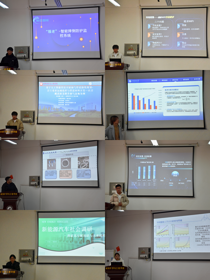 大賽自啟動以來,得到了學院師生的廣泛關注和積極參與。經過前期宣傳動員、項目征集和嚴格篩選,最終20項優秀作品脫穎而出,入圍院級初賽環節。初賽采用項目PPT展示與現場答辯相結合的形式進行,各參賽團隊負責人圍繞項目背景、研究思路、技術路線、創新亮點、應用前景及社會價值等方面進行了詳細闡述。評委老師從項目的科學性、創新性、可行性和現實意義等維度進行提問和點評,并就項目進一步完善和方案改進提出了意見和建議。