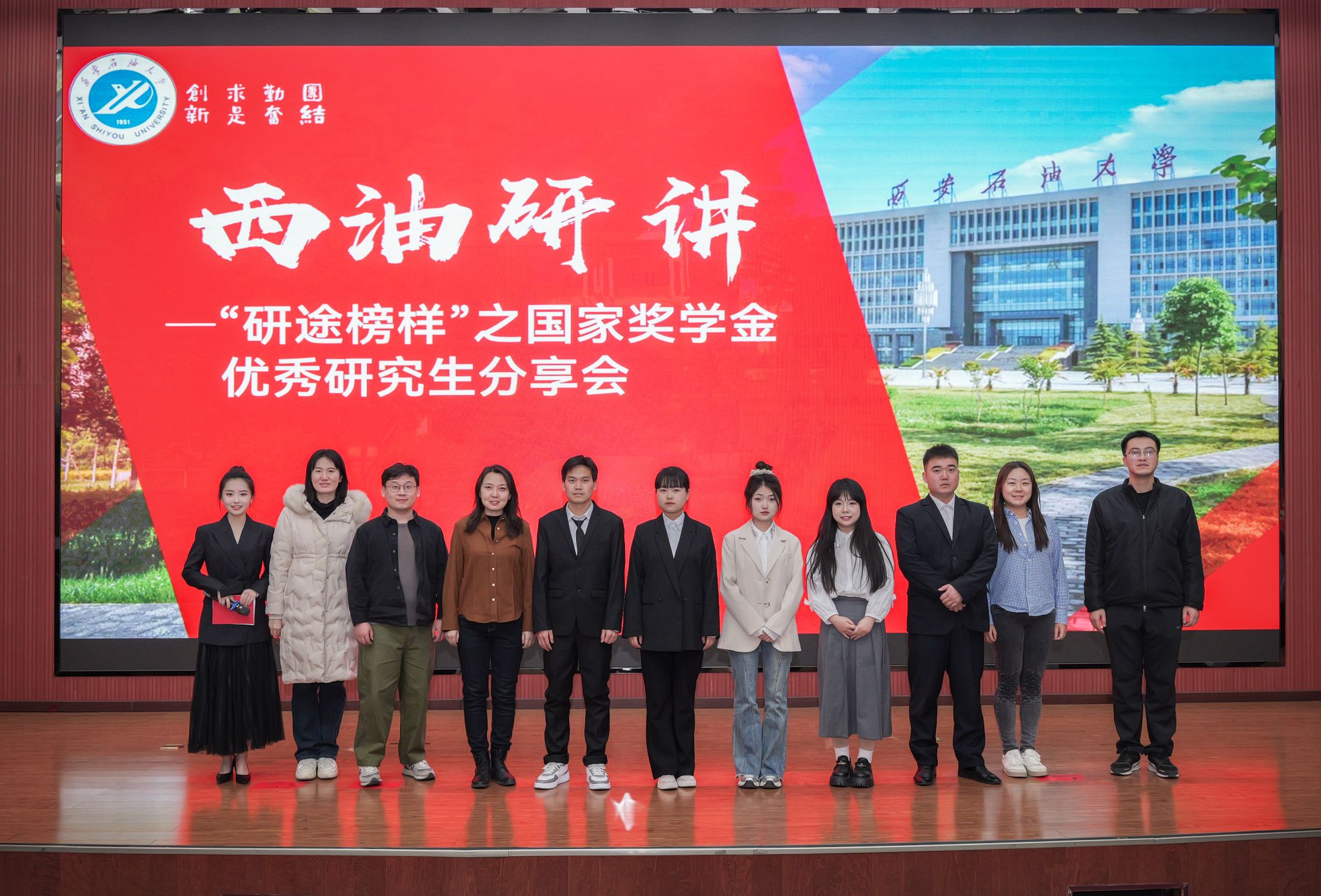 3月4日下午,由研究生工作部主辦、研究生會承辦的“西油研講”系列活動——國家獎學金優秀研究生分享會在鄠邑校區弘石報告廳舉辦。研究生工作部干部、部分研究生輔導員和400余名研究生參加分享報告會。
