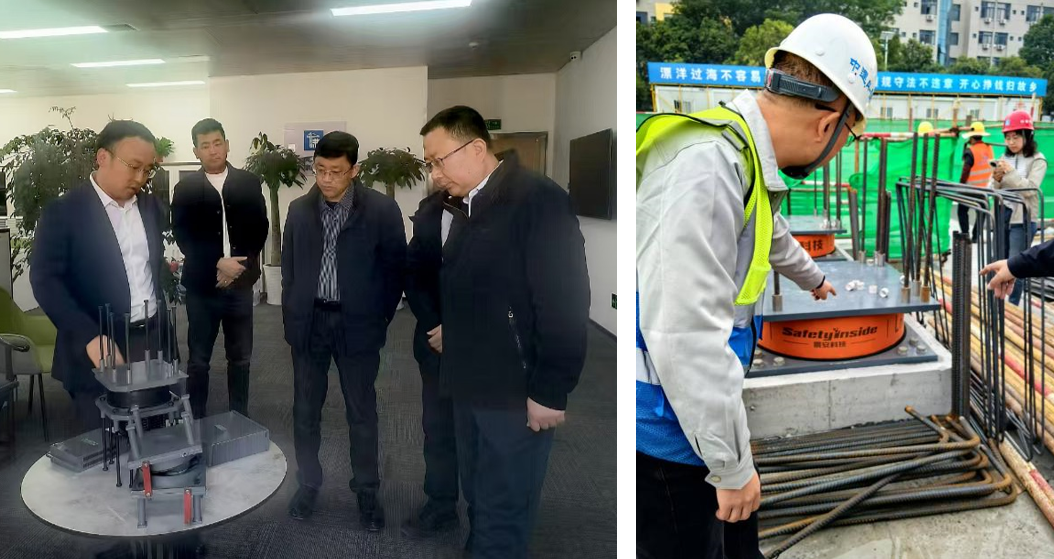 在施工現場,施工企業介紹了減隔震裝置的施工工藝。雙方圍繞減隔震裝置的安裝位置、固定方式、連接節點、后期維護等施工細節展開了重點探討。施工企業也分享了他們的經驗和建議。