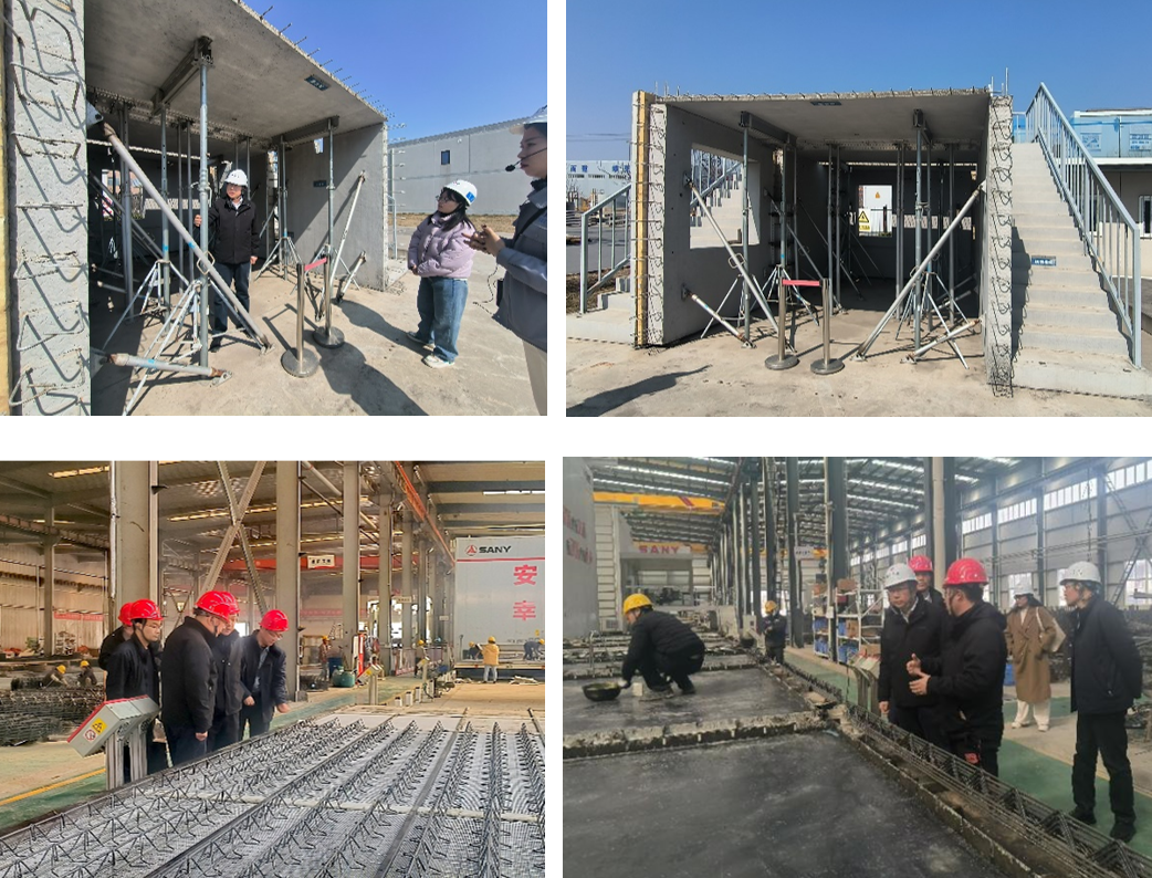 在疊合板、預制構件生產車間,工作人員詳細介紹了疊合板從原材料上料、鋼筋布置與綁扎,到混凝土澆筑、振搗及養護的全過程。基建處一行重點關注生產過程中的質量把控節點,比如鋼筋間距的精準控制、混凝土配合比的嚴格執行,還詢問了設備維護周期與故障應對措施,旨在從源頭上了解產品質量保障機制。在產品展示區,基建處一行仔細查看構件成品質量,向現場施工人員詢問安裝過程中遇到的難點及解決方案,像如何確保預制構件在高空吊裝時的精準就位,以及不同類型構件連接后的整體穩定性等問題。在適用性方面,結合校園建筑功能多樣、人流密集等特點,分析各類產品是否契合教學樓、宿舍、體育館等不同建筑的使用需求。
