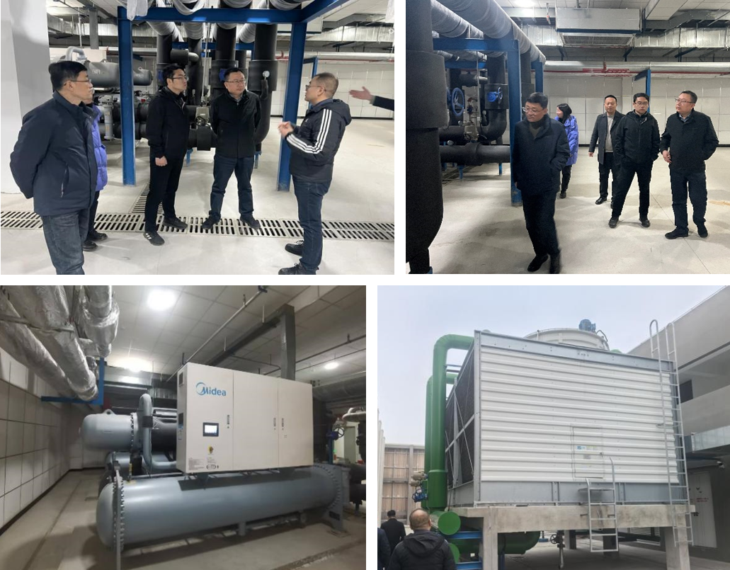 在對螺桿機、熱交換站泵房和屋面冷卻塔等設備的考察環節,企業技術人員對這一設備進行了全方位的講解,包括螺桿機的型號、制冷量、能效比等關鍵性能參數,讓基建處人員對螺桿機在不同工況下的制冷能力有了清晰的認識。