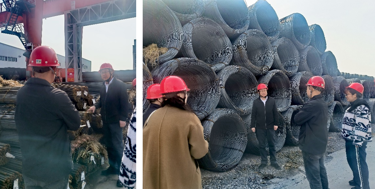 在鋼材供應基地,基建處一行詳細查看了各類鋼材的型號、規格、表面質量等參數,了解鋼材的生產現狀與庫存情況。通過與基地負責人溝通,掌握鋼材的進貨渠道及價格成本構成,尤其是針對學校新項目建設所需的圓鋼、螺紋鋼等關鍵鋼材品種,深入探討了其市場供應趨勢與價格走勢。