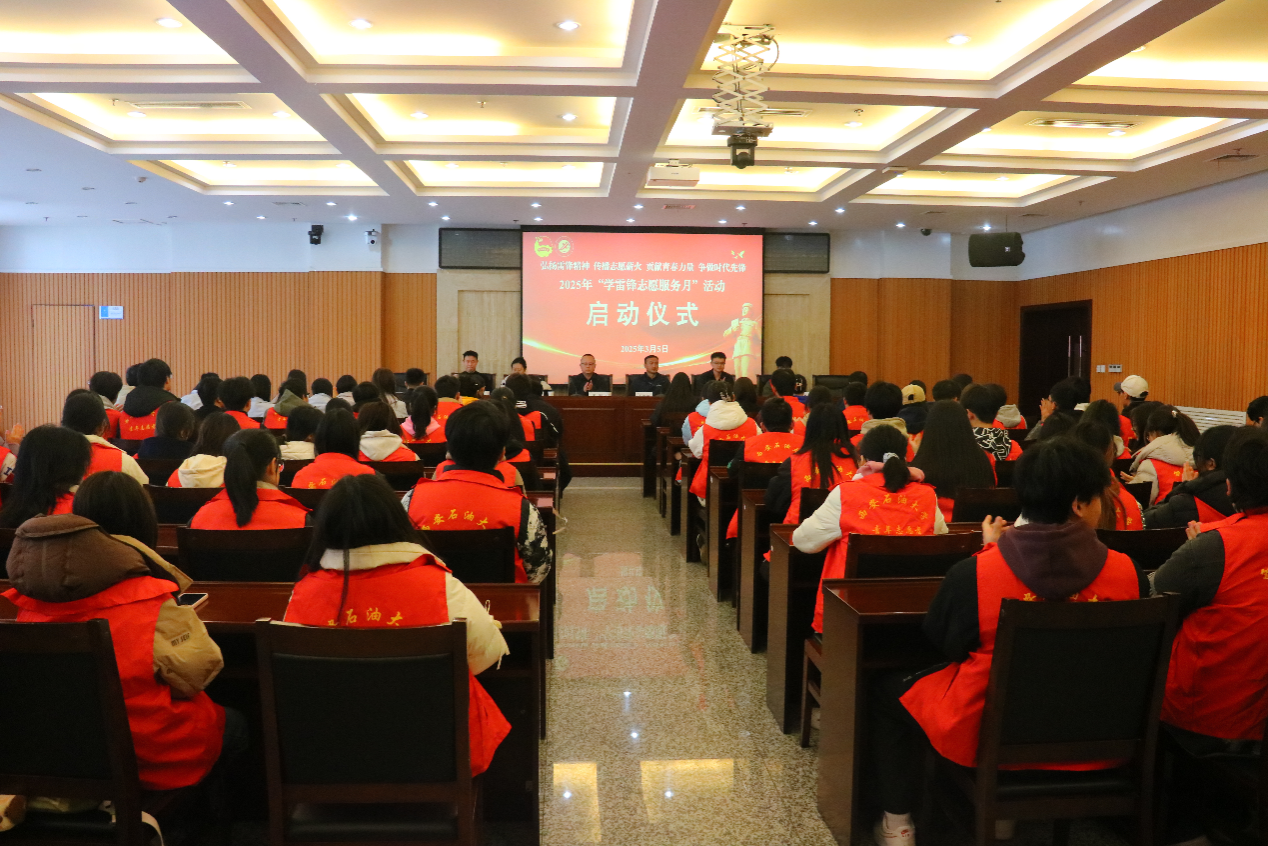 啟動儀式上,校團委副書記王軍策宣讀了《關于開展2025年“學雷鋒志愿服務月”活動的通知》,校團委兼職副書記、石油工程學院團委書記史陽及青年志愿者協會會長、化學化工學院化卓2201班朱啟航分別作交流發言。