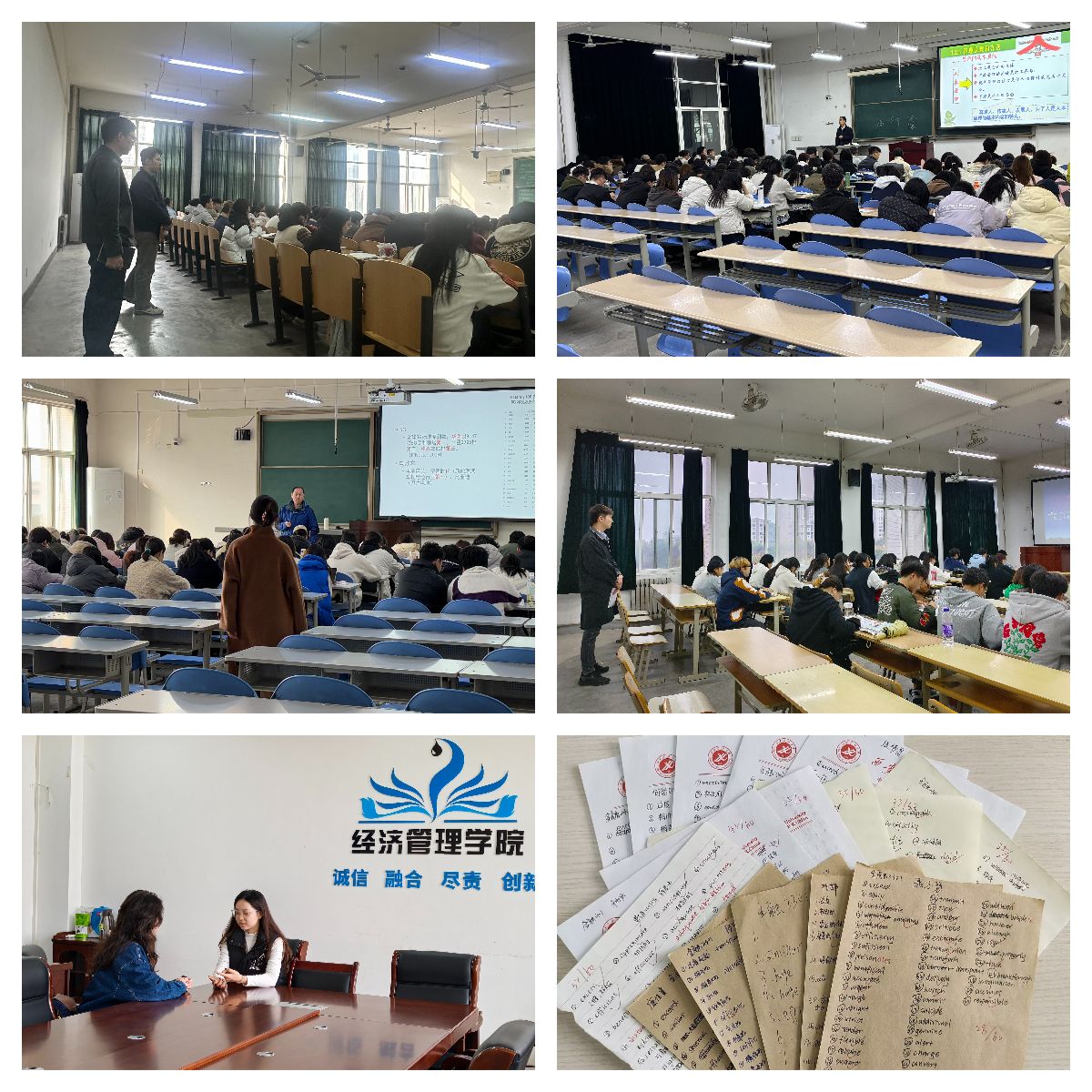 三是深入課堂強根基,學風建設再深化。學院領導班子開展開學第一周教學檢查,深入課堂一線,重點檢查教師備課、教學秩序、課堂互動等情況,聽取師生對課程設置、教學方法等方面的建議。各年級輔導員將深入課堂作為常態化工作,通過與學生共聽一節課、與任課教師交流了解學生課堂情況,關注學生狀態。多措并舉推動學風建設,組織開展英語四級單詞聽寫、學業預警學生談話、考風考紀誠信教育、職業生涯規劃講座等活動,增強學生學習主動性、積極性,引導學生以飽滿狀態迎接新學期。