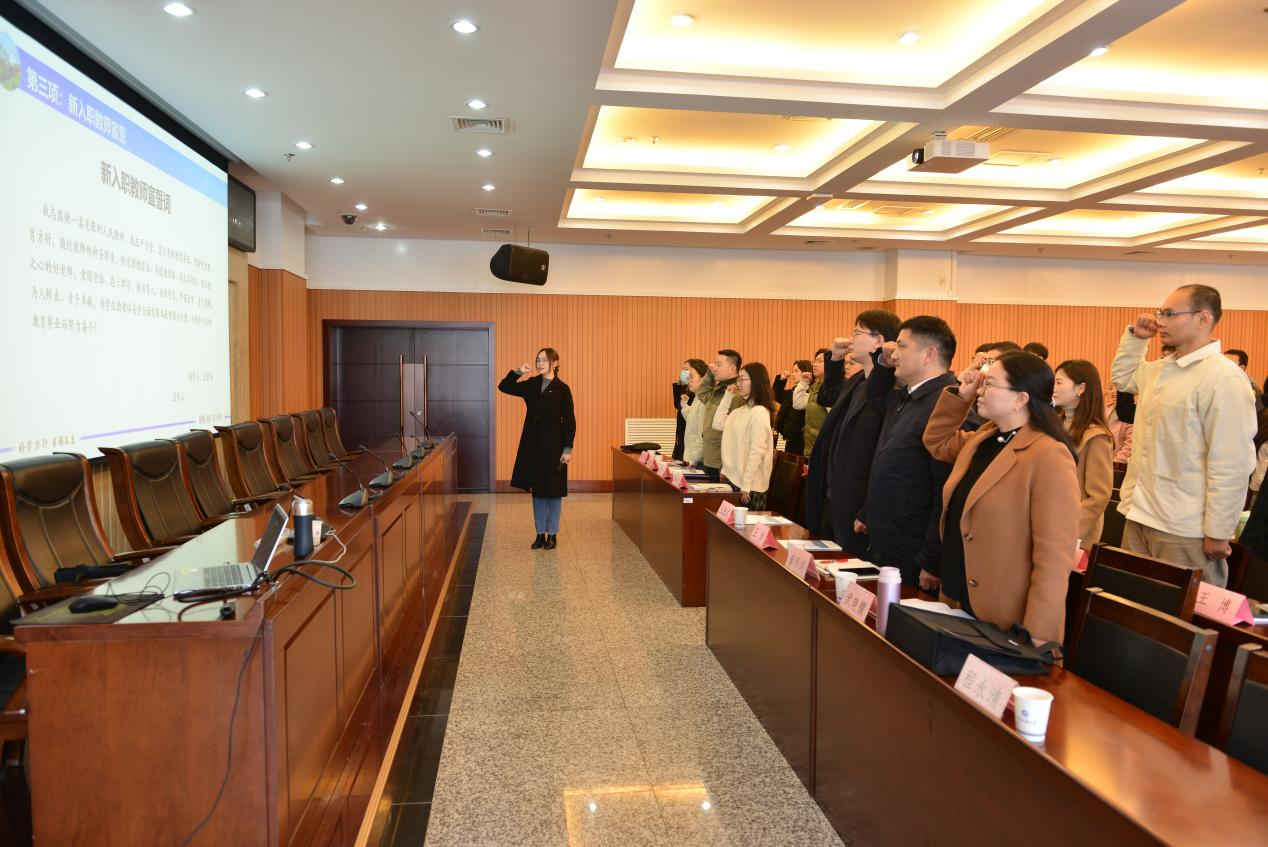 武曉朦就部門情況、新入職教師崗前培訓整體情況及課程情況進行了簡要介紹。新入職教師代表、石油工程學院王瑩潔老師帶領全體參會教師進行了宣誓,進一步增強了新入職教師的職業使命感與責任感。