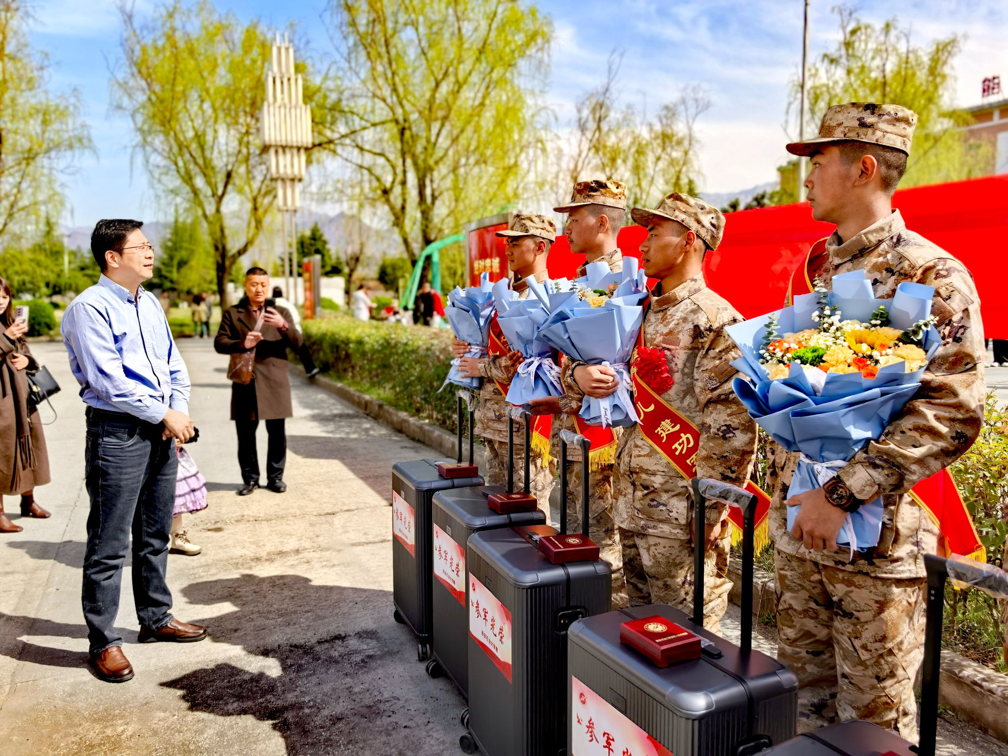 3月16日下午,雁塔區2025年上半年新兵入伍歡送大會在雁塔區新兵役前教育訓練基地隆重舉行。學生工作部部長、武裝部部長王亮,學生工作部副部長、武裝部副部長馬小剛,武裝部辦公室主任范俊鵬及部分輔導員代表出席活動,為6名通過嚴格選拔的入伍學子壯行。