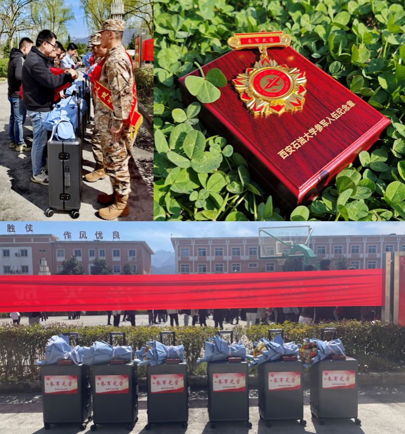 儀式現場,學校為每位入伍學生送上了精心準備的行李箱、紀念胸章、鮮花“青春報國三件禮”,6名學子莊嚴敬禮。儀式結束后,在場教師、家長、入伍學生進行合影留念,并與入伍學生揮手告別。