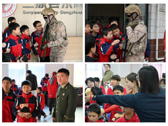 我校退役大學生士兵代表們通過講述軍營故事、科普國防知識、齊唱軍歌等形式,帶領孩子們“沉浸式”體驗部隊生活的紀律與熱血。孩子們認真聆聽,眼中充滿敬佩與向往。這場別開生面的愛國教育課,以榜樣的力量傳遞軍旅精神,在孩子們的幼小心靈中播撒下自強不息、報效祖國的種子。