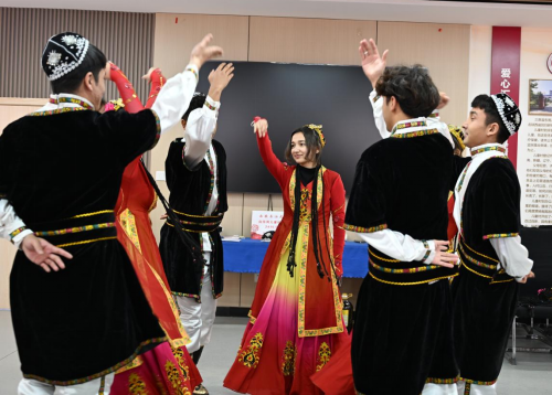 隨后,少數民族預科班學生為孩子們表演了一段熱情洋溢的民族舞。伴隨歡快的旋律,學生們以靈動的舞姿展現維吾爾族舞蹈的獨特魅力,旋轉的裙擺與孩子們燦爛的笑臉交相輝映。這場文化互動不僅為孩子們送去溫暖陪伴,更架起民族文化交流的橋梁,讓民族團結、友愛互助的種子在童心中悄然生長。
