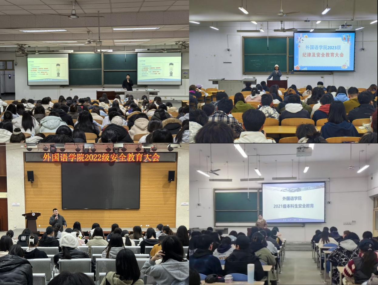 為落實《關于開展紀律教育學習宣傳月活動的通知》(學工函〔2025〕3號)文件要求,切實增強全體在校學生的紀律意識,提升法治素養,努力營造一個風清氣正、秩序井然、和諧美好的校園環境,確保校園安全穩定。根據學校統一安排部署,外國語學院各年級于3月10日至13日分別在鄠邑校區博思樓B114、崇文樓118召開安全教育大會,會議由各年級輔導員主持。