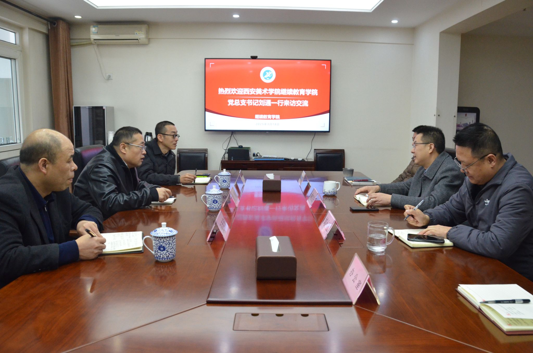3月18日上午,西安美術學院繼續教育學院黨總支書記劉通一行3人來我校繼續教育學院調研交流繼續教育工作。院長林紅先主持座談會,副院長劉小波及相關科室負責人參會。