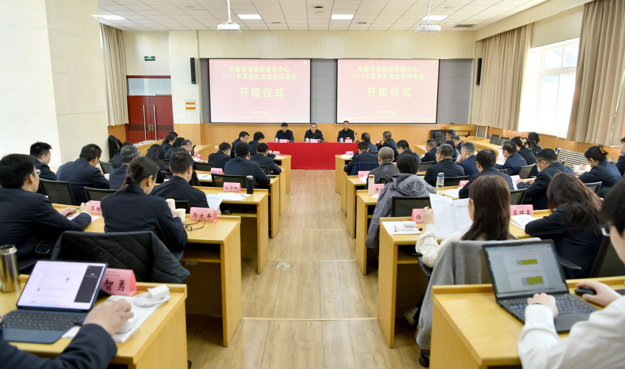 3月18日上午,中國石油物資采購中心2025年質量安全業務培訓班在我校明德校區順利開班。中國石油物資采購中心(以下簡稱“物資中心”)副主任、安全總監范士洪,西安石油大學黨委副書記程永清出席開班儀式,儀式由物資中心質量健康安全環保部經理趙廣暉主持。來自物資中心及各分公司的50余名負責質量安全業務的中層管理人員參加儀式。