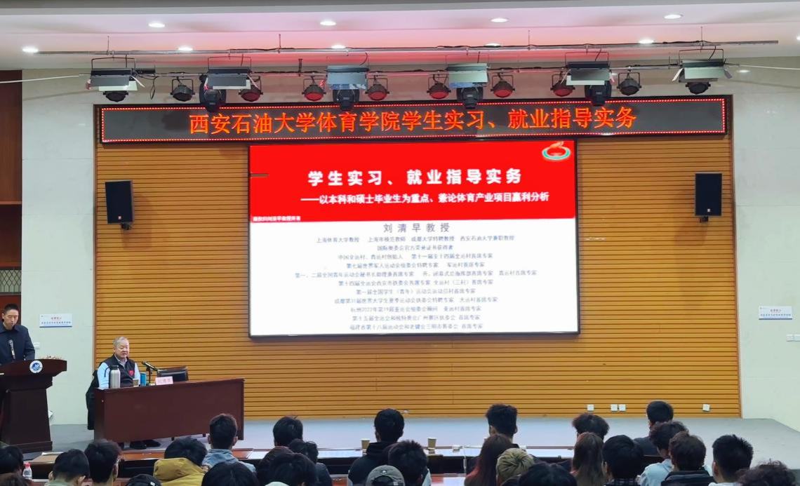 3月14日,體育學院在鄠邑校區崇文樓118報告廳舉辦學生實習與就業指導專題講座,特邀我校兼職教授、我國知名體育產業專家、上海體育大學劉清早教授講授題為學生實習、就業指導實務——以本科和碩士畢業生為重點、兼論體育產業項目贏利分析的報告。體育學院院長李壽邦、辦公室主任侯陽、學工辦主任姜國平、全體本科生及研究生共同參與。