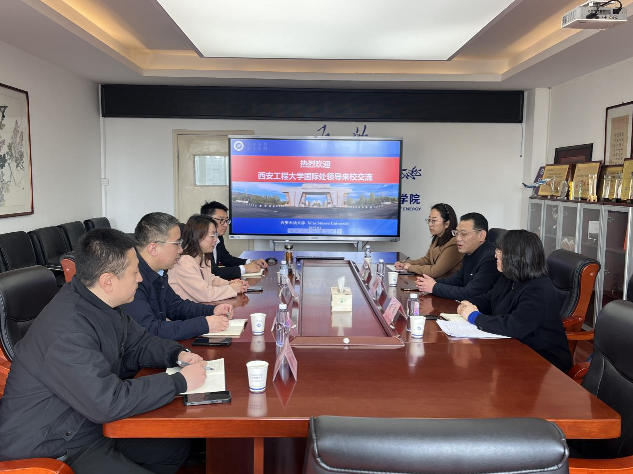 3月19日下午,西安工程大學國際合作與交流處處長秦偉、副處長黃玲及科員梁風一行來校調研交流。座談會在雁塔校區東方石油樓801會議室舉行,國際合作與交流處處長、國際教育學院院長董皓,副處長、副院長顏庭星、黃愷及國際學生工作辦公室主任韓旭參加。