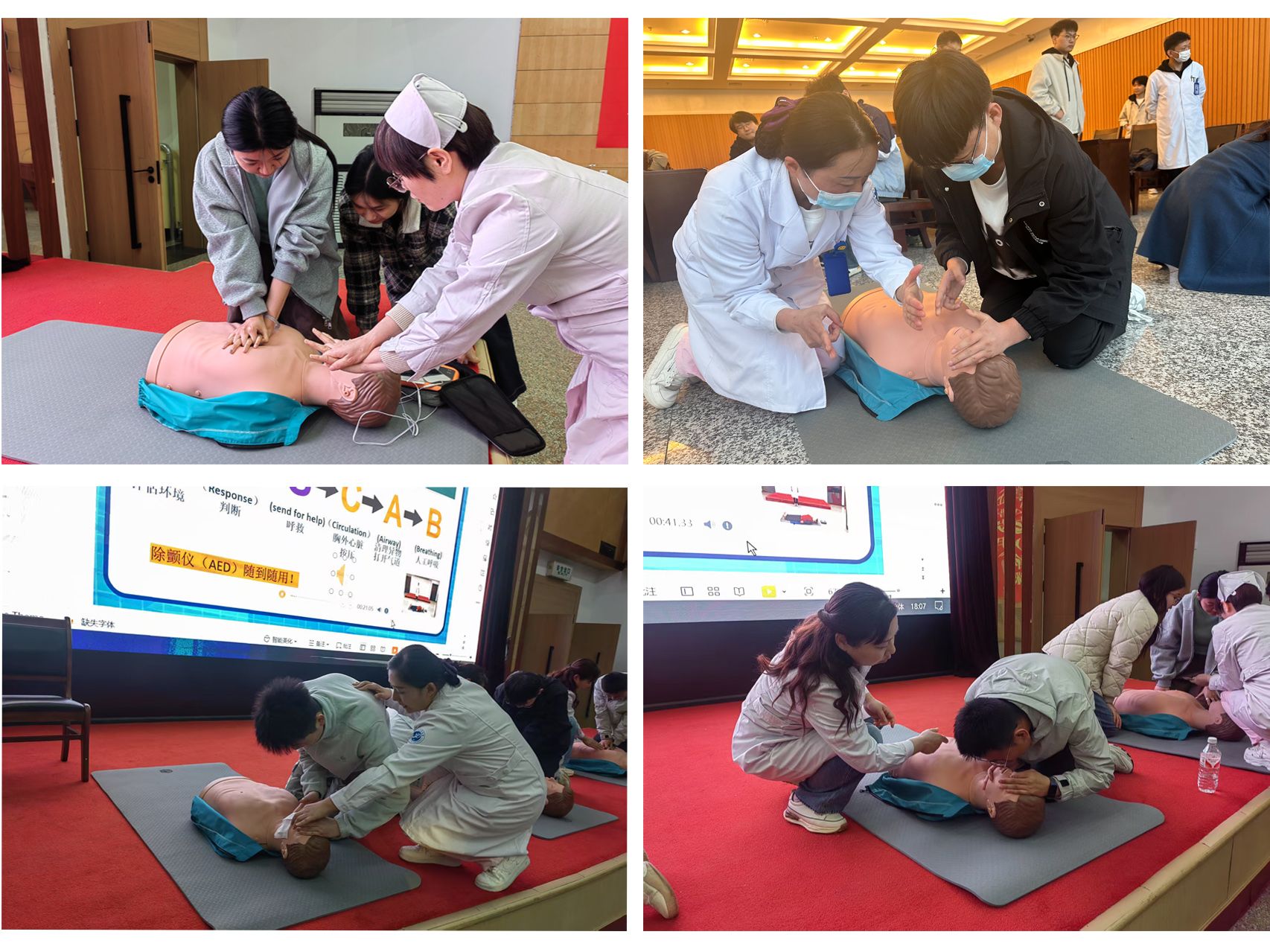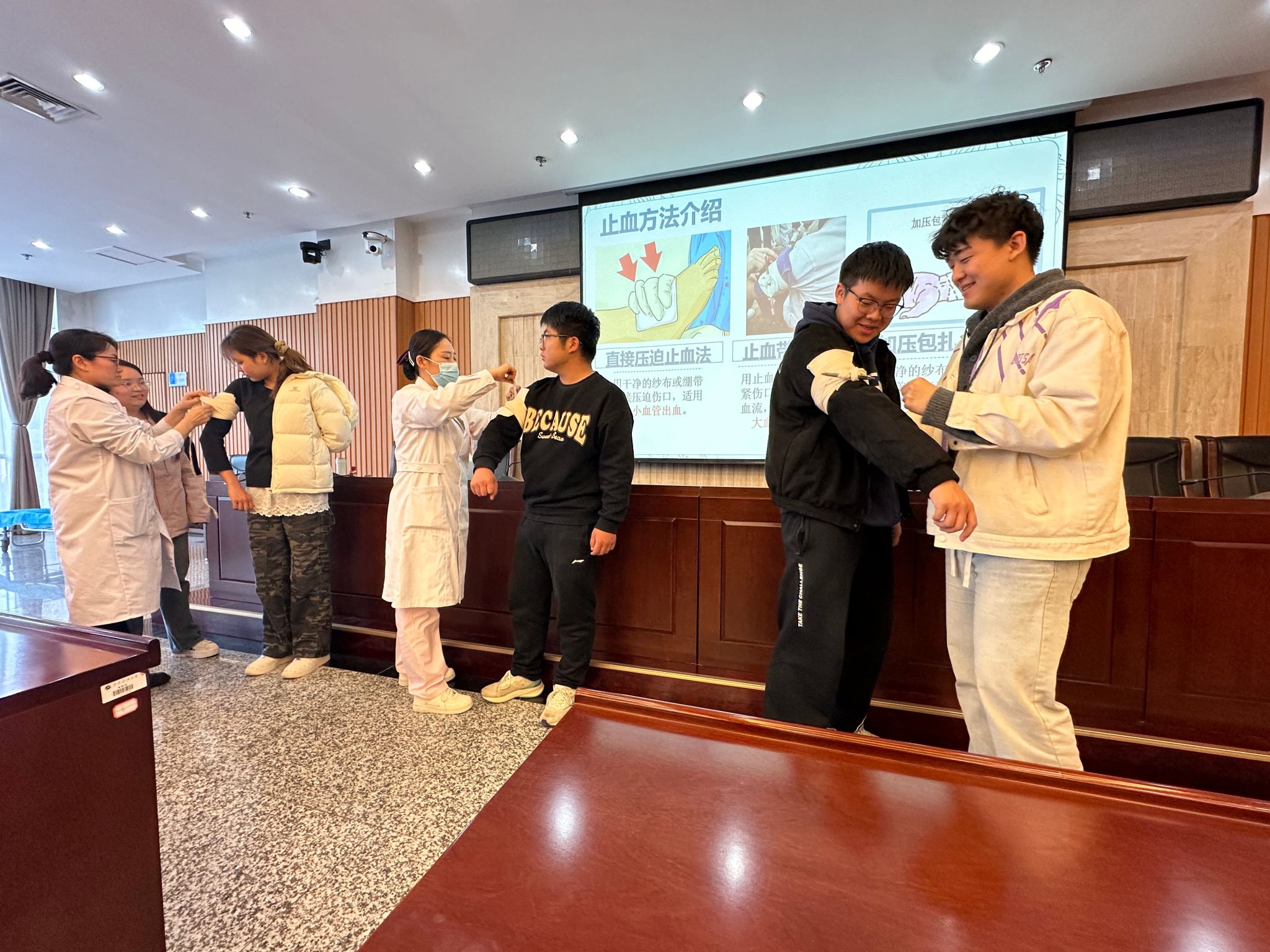 培訓采用理論講解與現場演練相結合的方式,培訓內容涵蓋了心肺復蘇和AED的使用、氣道異物梗阻的應急處理、外傷止血包扎技術、燒燙傷應急處理、溺水應急處理等六項實用急救技能。宋彥霞和解姣兩位講師憑借豐富的臨床經驗和教學經驗,用通俗易懂的語言,以及標準的動作示范,深入淺出地講解了各項急救技能的理論知識和操作要點。為了讓同學們更好地掌握急救技能,培訓還設置了模擬演練環節,同學們在講師的指導下,親身體驗了心肺復蘇、AED使用、止血包扎等操作。