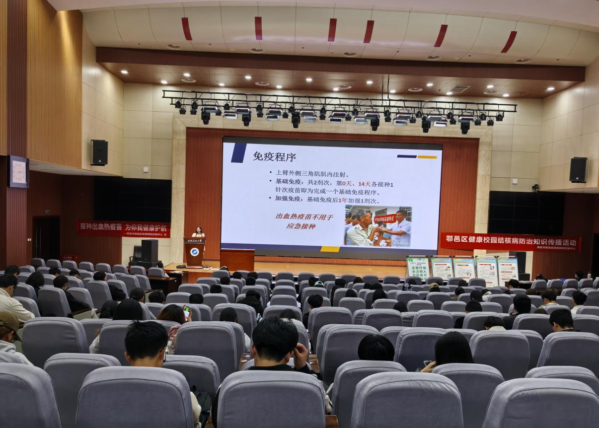 講座中,各位專家、老師結合自身多年工作經歷,詳細介紹了什么是肺結核以及肺結核的潛伏期表現、如何預防和治療肺結核病。鄠邑區疾控中心鄭美辰老師給大家講了關于流行性出血熱病原學特征、傳播途徑、典型癥狀及防治要點,詳細介紹了疫苗接種、個人防護、環境衛生整治等防控措施。專家們的講座充分考慮大學生實際,語言淺顯易懂,大家受益匪淺。現場還通過互動問答等形式增加了講座的趣味性,幫助師生及居民提升防治結核病、流行性出血熱的意識,取得了良好的教育宣傳效果。