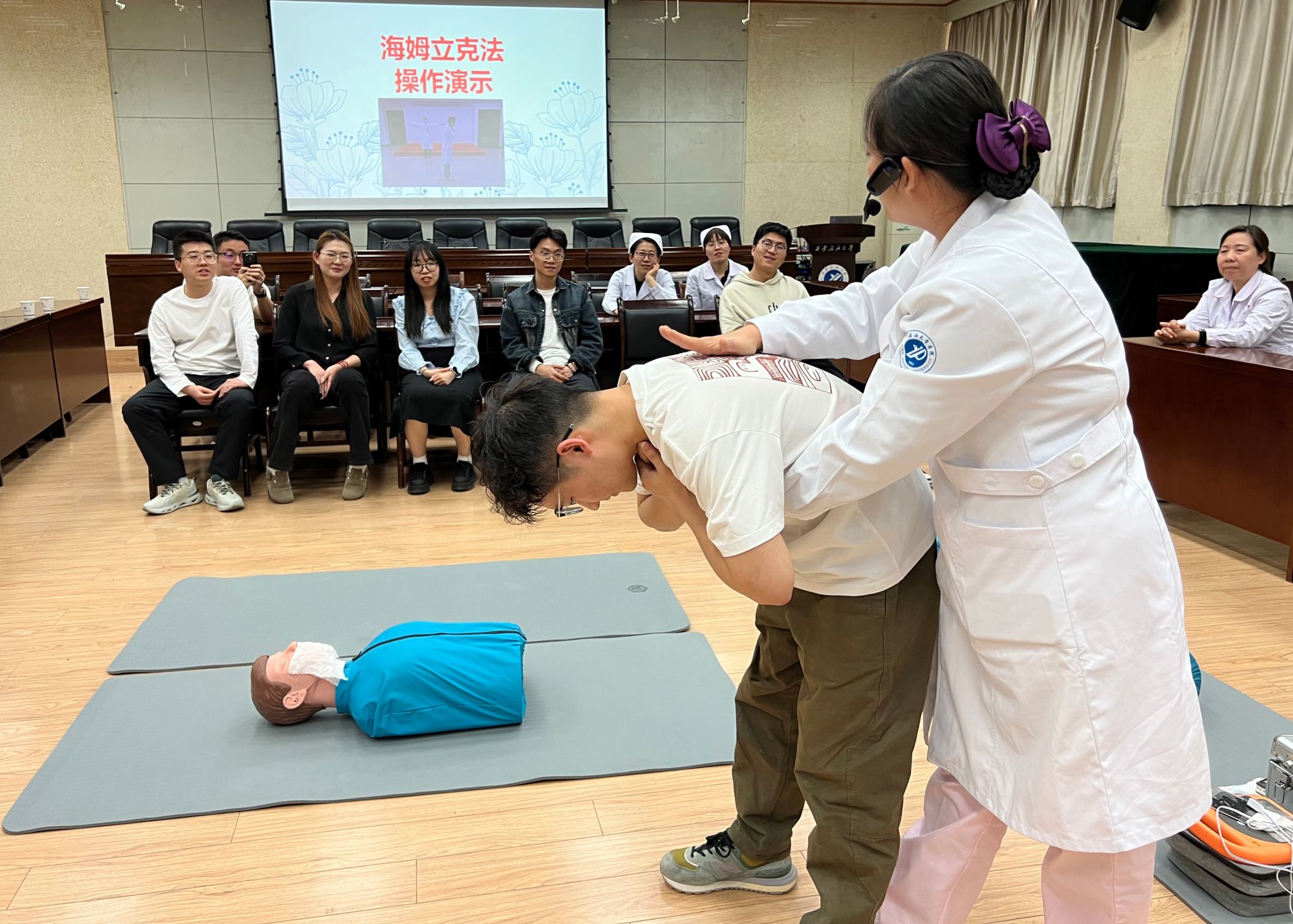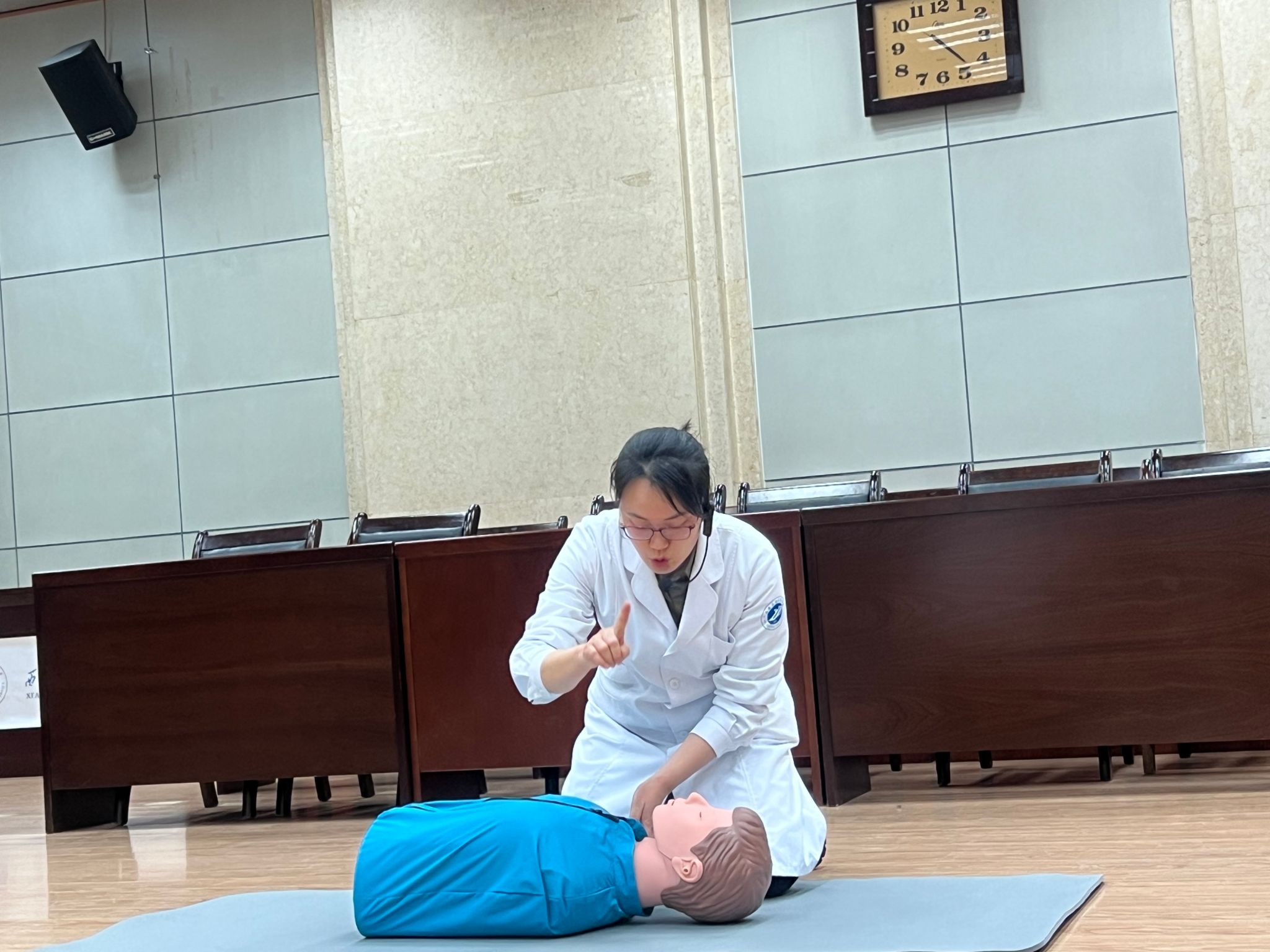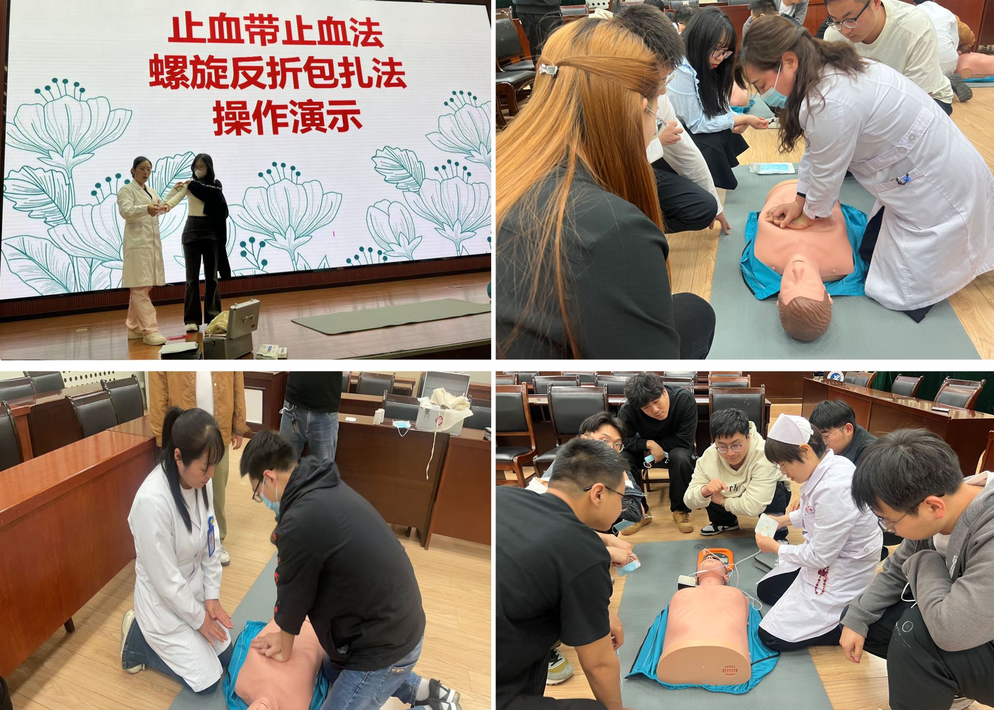 培訓現場,校醫院工作人員、陜西省紅十字救護師資宋彥霞、解姣主講,內容主要涵蓋:心肺復蘇技術(CPR)和自動體外除顫儀(AED)的使用;氣道異物梗阻的應急處理(海姆立克急救法);外傷止血與包扎技巧;燒燙傷的科學處理;溺水現場的應急救護;講師們通過生動的案例分析和分步演示,詳細講解了各類突發情況的處置要點,并強調“黃金救援時間”的重要性。