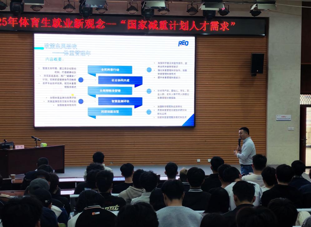 在具體講座中,蘇林院長圍繞就業新觀念,并結合體育行業前沿動態,從四大維度展開講解。一是傳統體育教育崗位進階?:中小學體育教師需強化“體醫結合”技能,融入健康管理理念;二是校園體育教育拓展邊界?:推動校園減重課程開發、青少年體能監測等創新實踐;三是社會體育教育多元機遇?:健身教練、運動康復師、健康管理師等新興職業成為熱門賽道;四是體教融合跨界發展?:體育與科技、醫療、文旅等產業深度融合,將催生“運動處方師”“智能健身導師”等復合型崗位。