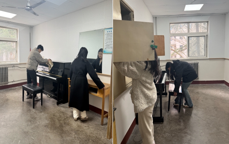 我校音樂系組織學生以班級為單位,開展琴房清掃活動。活動前,同學們提前準備好掃把、拖把、抹布、水桶等清潔工具,大家分工明確,掃地拖地、清理地面、擦拭琴鍵琴身以及桌椅等,不放過任何一個衛生死角。在清掃過程中,同學們充分發揮不怕臟、不怕累的精神,認真仔細地完成每一項任務,為同學們營造了一個更加整潔、舒適的學習環境。