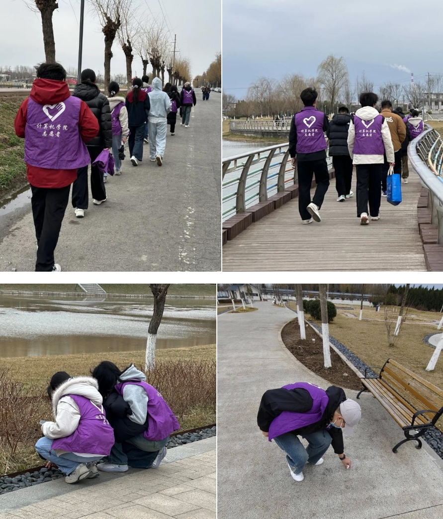 我校計算機學院志愿者奔赴潭濱公園,變身環境“守衛者”,領取手套、垃圾袋等工具,認真聆聽活動組織者講解注意事項,明確各自的分工后,迅速分組開展垃圾清理工作,