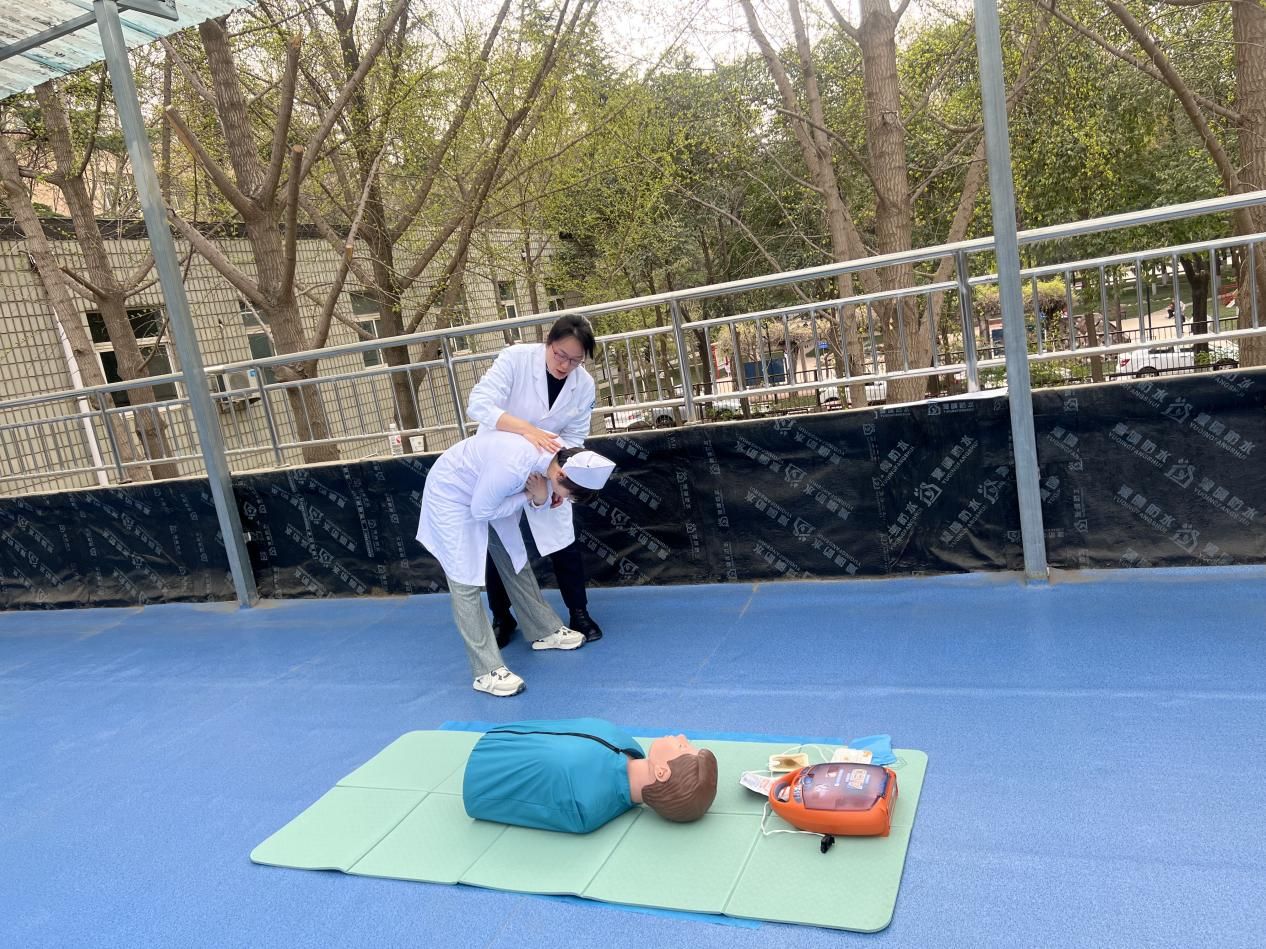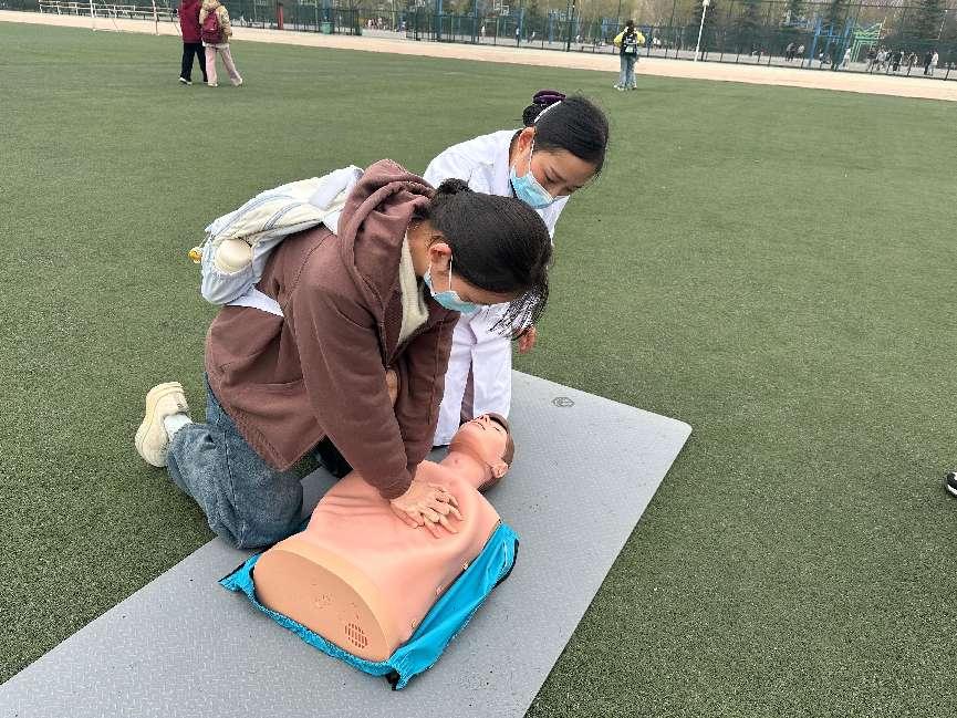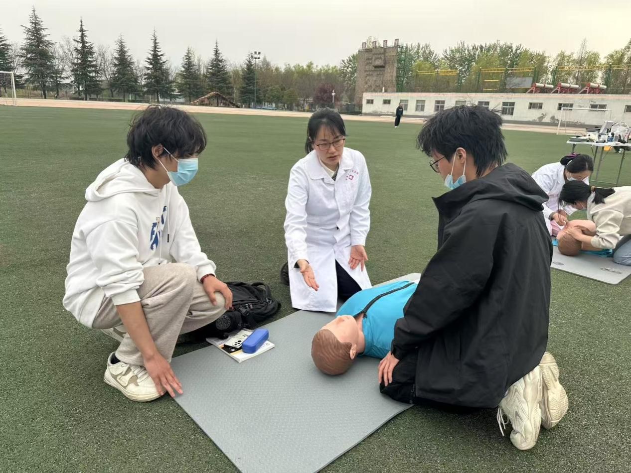 培訓主要圍繞突發情況下的自救互救展開,校醫院主管護師、陜西省救護師資宋彥霞、解姣系統講解了單人徒手心肺復蘇術(CPR)、自動體外除顫儀(AED)的使用、氣道異物梗阻急救、外傷包扎、中暑及燒燙傷應急處置等常用急救知識。通過“理論講解+操作示范+分組實操”的遞進式教學,確保學員逐步掌握技術要領。