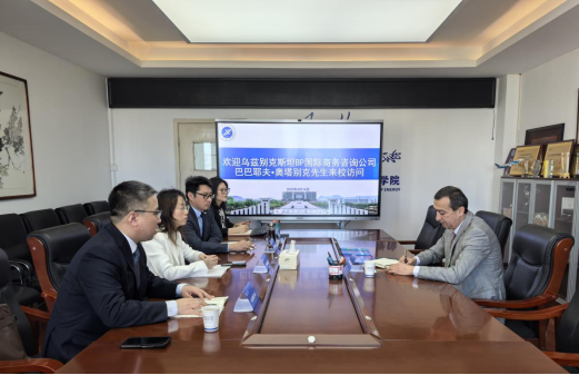 巴巴耶夫·奧塔別克首先對學校在能源領域的國際化辦學成效表示祝賀,期待我校與烏茲別克斯坦教育合作不斷開花結果。座談會上,他簡要介紹了公司發展歷程、主營業務,并表示烏國當前對高素質專業人才需求旺盛,烏赴華留學人數不斷攀升,公司發揮自身行業經驗和資源優勢,在來華留學招生、國際辦學等方面深化友好合作。