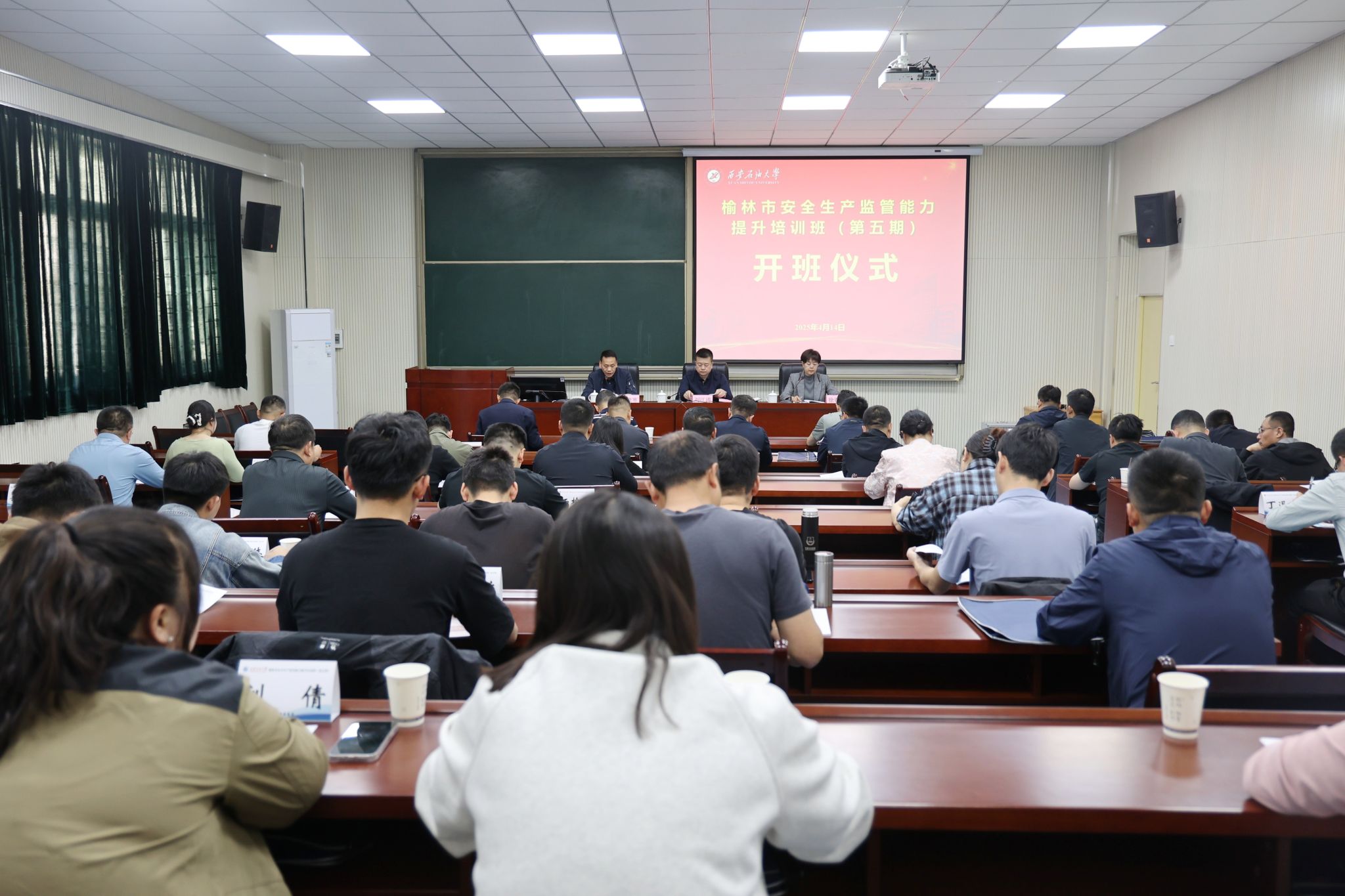 4月14日上午,榆林市安全生產監管能力提升培訓班(第五期)在我校明德校區順利開班。榆林市應急管理局黨委委員、副局長劉江濤,我校繼續教育學院黨總支書記張凌寒出席開班儀式。儀式由榆林市應急管理局四級調研員徐春梅主持。來自榆林市各單位的61名安全生產監管骨干參加培訓。