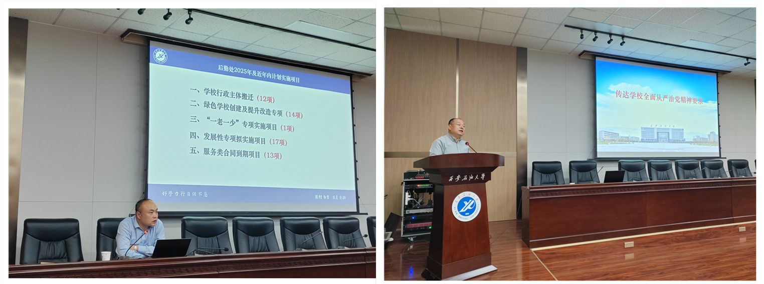 張驍勇副校長就如何圍繞學校中心工作高質量開展后勤服務保障提出三點要求:一是要統一認識、提高政治站位,要深刻把握后勤工作的服務屬性,以“師生至上”為宗旨,全面提升服務意識,為打造“幸福西石大”貢獻后勤力量。二是要協同攻堅、提升服務效能,堅持全局“一盤棋”思想,強化部門聯動,突破溝通障礙,以“馬上就辦、辦就辦好”的作風,跑出后勤保障“加速度”。三是要嚴明紀律、鑄牢廉潔防線,完善制度規范,構建“受理-處置-反饋”閉環機制,嚴守紀律紅線,以風清氣正的政治生態推動服務質量再上新臺階。