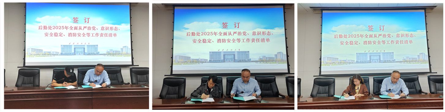 會上,后勤處領導班子逐一與所分管的各中心(辦)負責人簽訂了《后勤處2025年全面從嚴治黨、意識形態、安全穩定、消防安全等工作責任清單》,要求緊密結合全面從嚴治黨工作、后勤管理集中整治工作,進行壓力逐級傳導,層層夯實責任,確保責任到人。