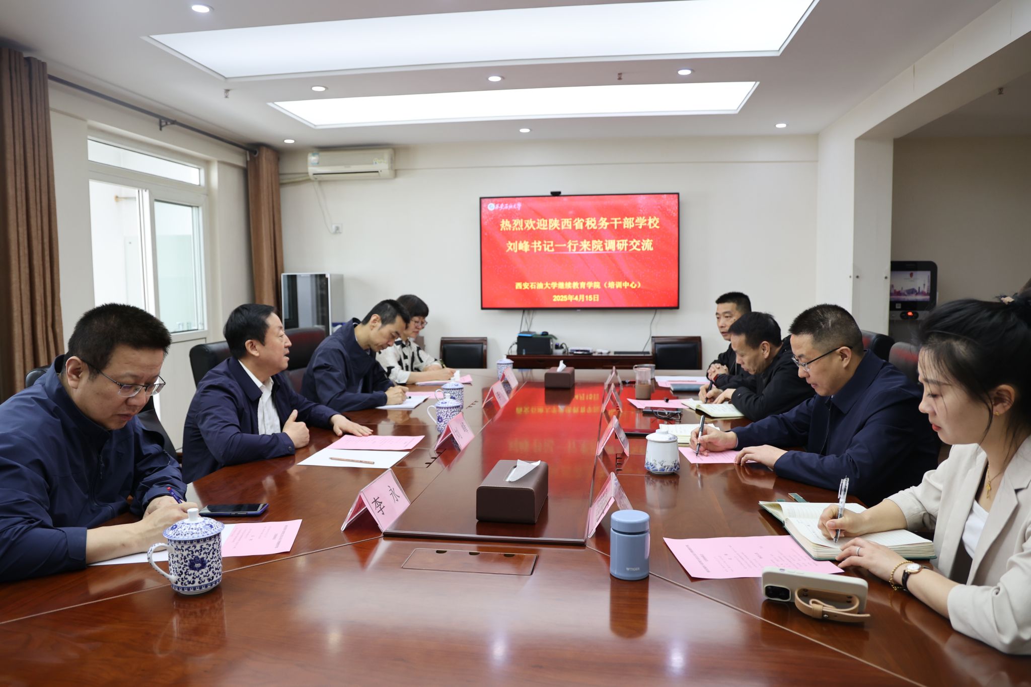 4月15日上午,陜西省稅務干部學校(以下簡稱“省稅校”)黨組書記、校長劉峰一行四人前來我校調研交流。繼續教育學院黨總支書記張凌寒、院長林紅先參加了座談。